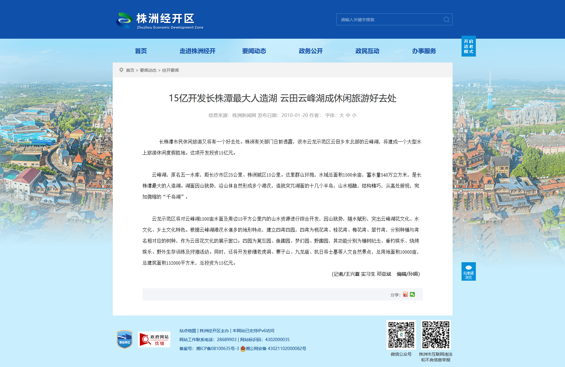 长株潭市民休闲旅游又将有一个好去处。株洲有关部门日前透露,该市云龙示范区云田乡东北部的云峰湖,将建成一个大型水上旅游休闲度假胜地。这项开发投资15亿元。