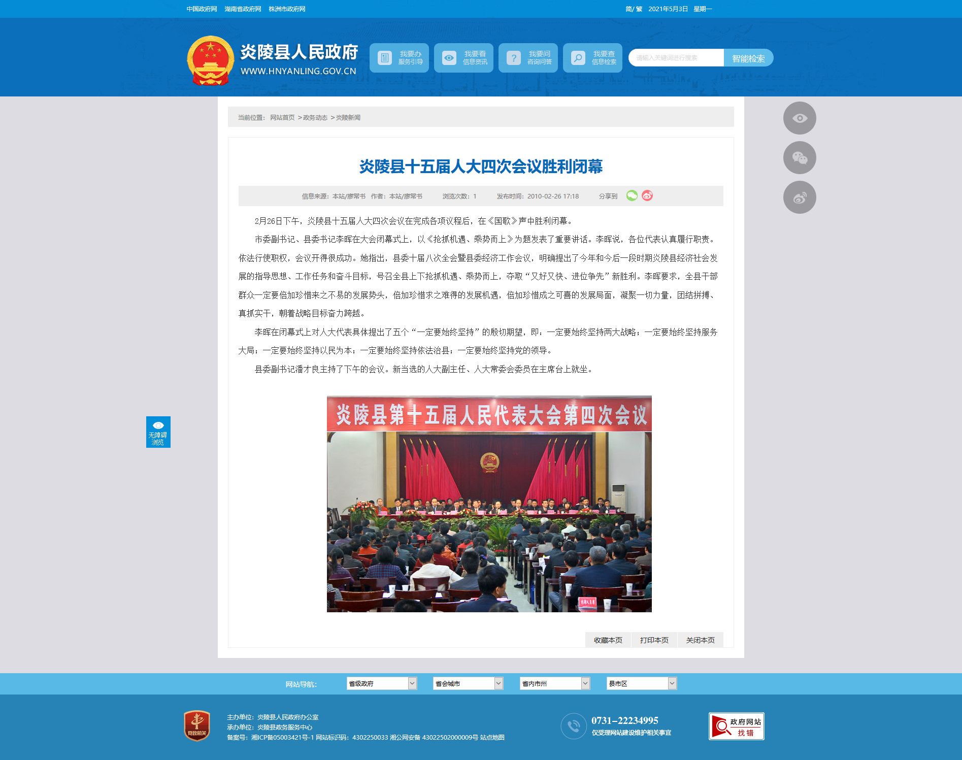 2月26日下午,炎陵县十五届人大四次会议在完成各项议程后,在《国歌》声中胜利闭幕。
