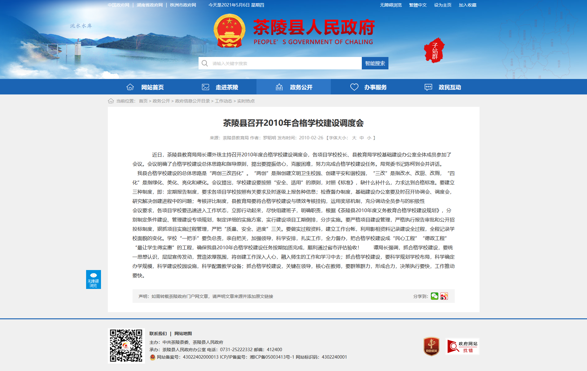 近日,茶陵县教育局局长谭外珠主持召开2010年度合格学校建设调度会,各项目学校校长、县教育局学校基础建设办公室全体成员参加了会议。会议明确了合格学校建设总体思路和指导原则,提出要提振信心,克服困难,努力完成合格学校建设任务。局党委书记陈柯到会并讲话。 我县合格学校建设的总体思路是“两创三改四化”。“两创”是指创建文明卫生校园、创建平安和谐校园,“三改”是指改水、改厨、改厕,“四化”是指绿化、美化、亮化和硬化。会议提出,学校建设要按照“安全、适用”的原则,对照《标准》,缺什么补什么,力求达到合格标准。要建立三种制度,即:定期报告制度,要求各项目学校按照有关要求及时逐级上报各种信息;检查督办制度,基础建设办公室要及时召开协调会、调度会,研究解决创建进程中的问题;考核评比制度,县教育局要将合格学校建设与绩效考核挂钩,运用奖惩机制,充分调动全员参与的积极性