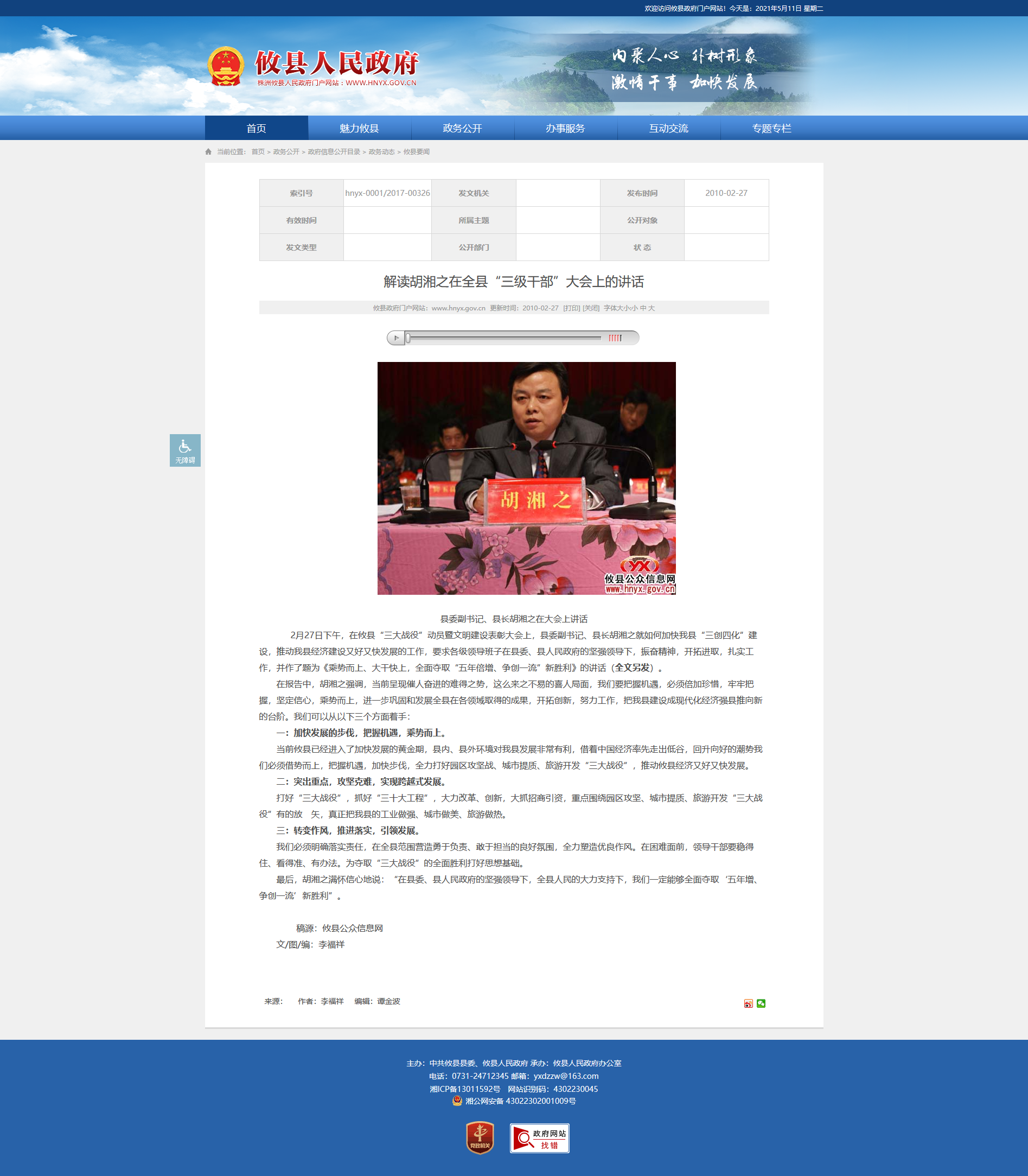 2月27日下午,在攸县“三大战役”动员暨文明建设表彰大会上,县委副书记、县长胡湘之就如何加快我县“三创四化”建设,推动我县经济建设又好又快发展的工作,要求各级领导班子在县委、县人民政府的坚强领导下,振奋精神,开拓进取,扎实工作,并作了题为《乘势而上、大干快上,全面夺取“五年倍增、争创一流”新胜利》的讲话(全文另发)。