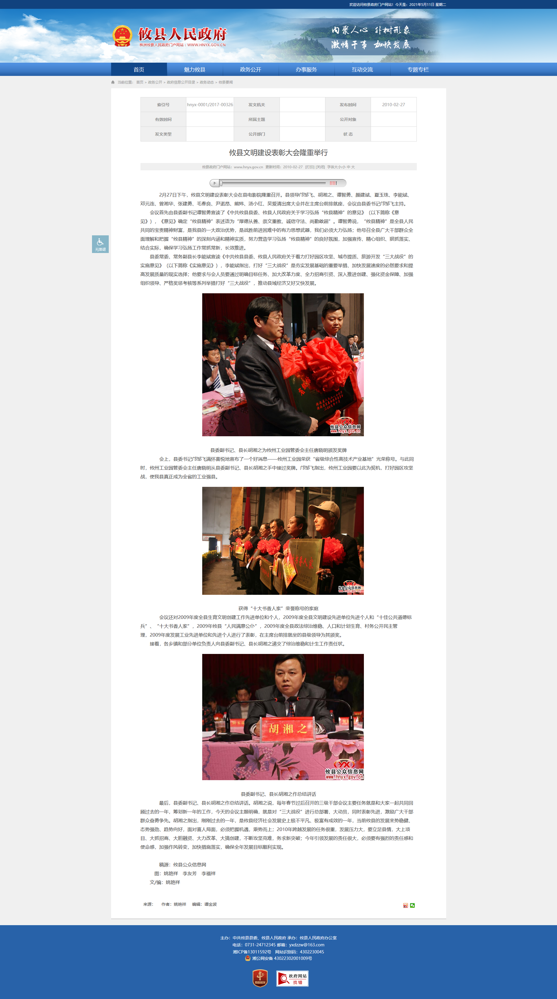 会议还对2009年度全县生育文明创建工作先进单位和个人,2009年度全县文明建设先进单位先进个人和“十佳公共道德标兵”、“十大书香人家”,2009年攸县“人民满意公仆”,2009年度全县政法综治维稳、人口和计划生育、村务公开民主管理,2009年度发展工业先进单位和先进个人进行了表彰,在主席台前排就坐的县级领导为其颁奖。