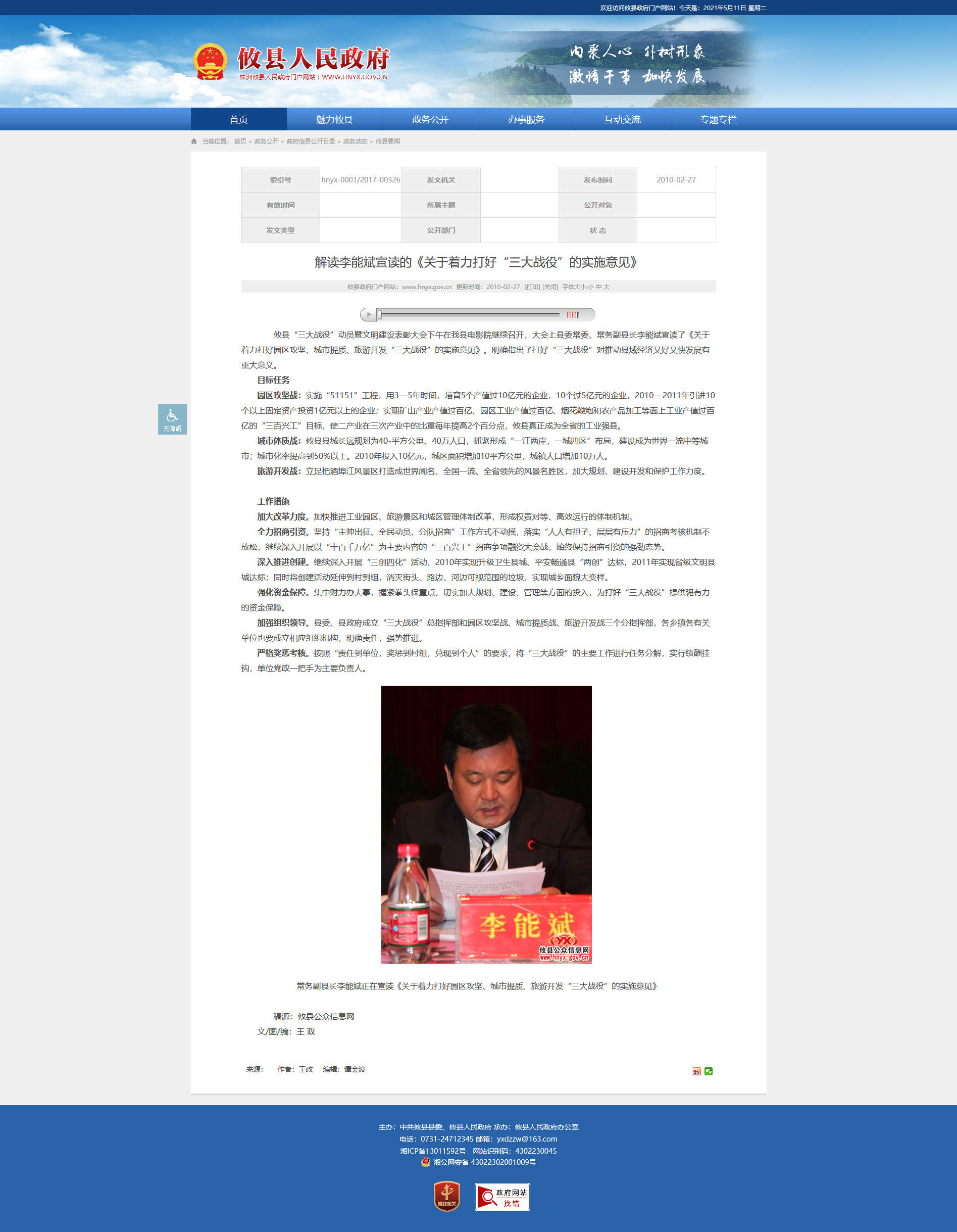 园区攻坚战:实施“51151”工程,用3—5年时间,培育5个产值过10亿元的企业,10个过5亿元的企业,2010—2011年引进10个以上固定资产投资1亿元以上的企业;实现矿山产业产值过百亿、园区工业产值过百亿、烟花鞭炮和农产品加工等面上工业产值过百亿的“三百兴工”目标,使二产业在三次产业中的比重每年提高2个百分点,攸县真正成为全省的工业强县。