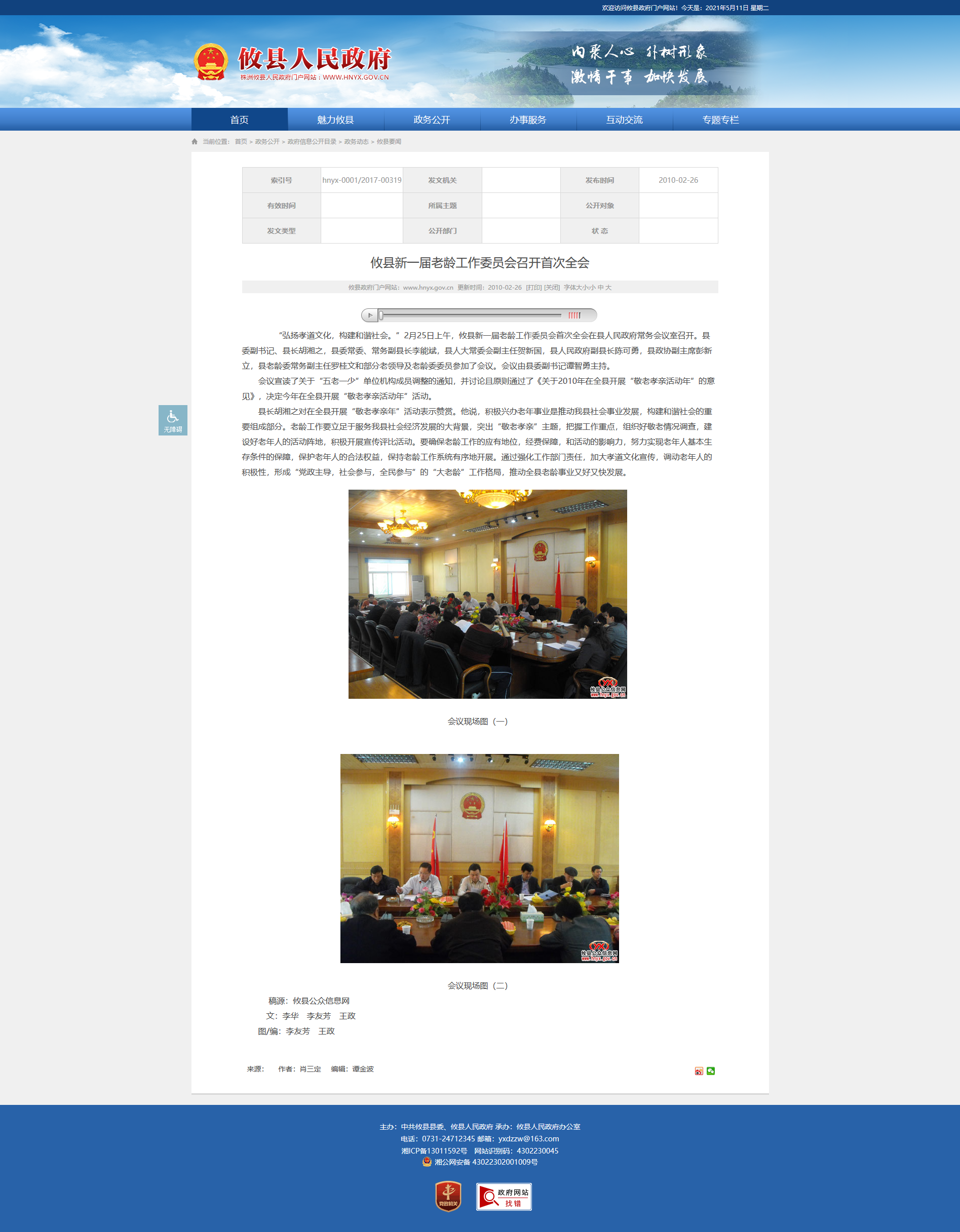 县长胡湘之对在全县开展“敬老孝亲年”活动表示赞赏。他说,积极兴办老年事业是推动我县社会事业发展,构建和谐社会的重要组成部分。老龄工作要立足于服务我县社会经济发展的大背景,突出“敬老孝亲”主题,把握工作重点,组织好敬老情况调查,建设好老年人的活动阵地,积极开展宣传评比活动。要确保老龄工作的应有地位,经费保障,和活动的影响力,努力实现老年人基本生存条件的保障,保护老年人的合法权益,保持老龄工作系统有序地开展。通过强化工作部门责任,加大孝道文化宣传,调动老年人的积极性,形成“党政主导,社会参与,全民参与”的“大老龄”工作格局,推动全县老龄事业又好又快发展。