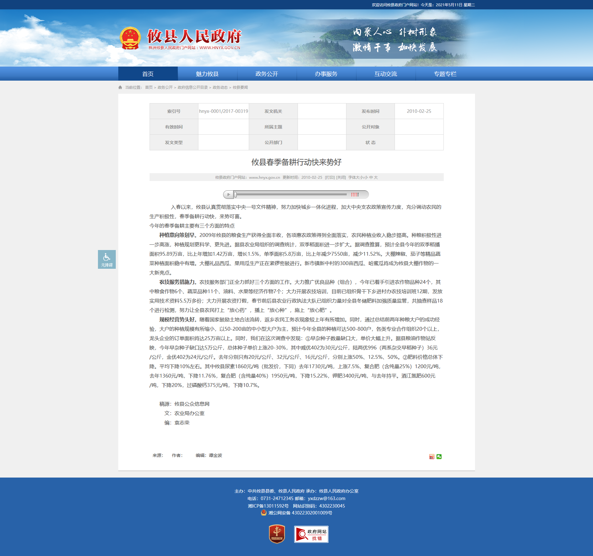 入春以来,攸县认真贯彻落实中央一号文件精神,努力加快城乡一体化进程,加大中央支农政策宣传力度,充分调动农民的生产积极性,春季备耕行动快,来势可喜。