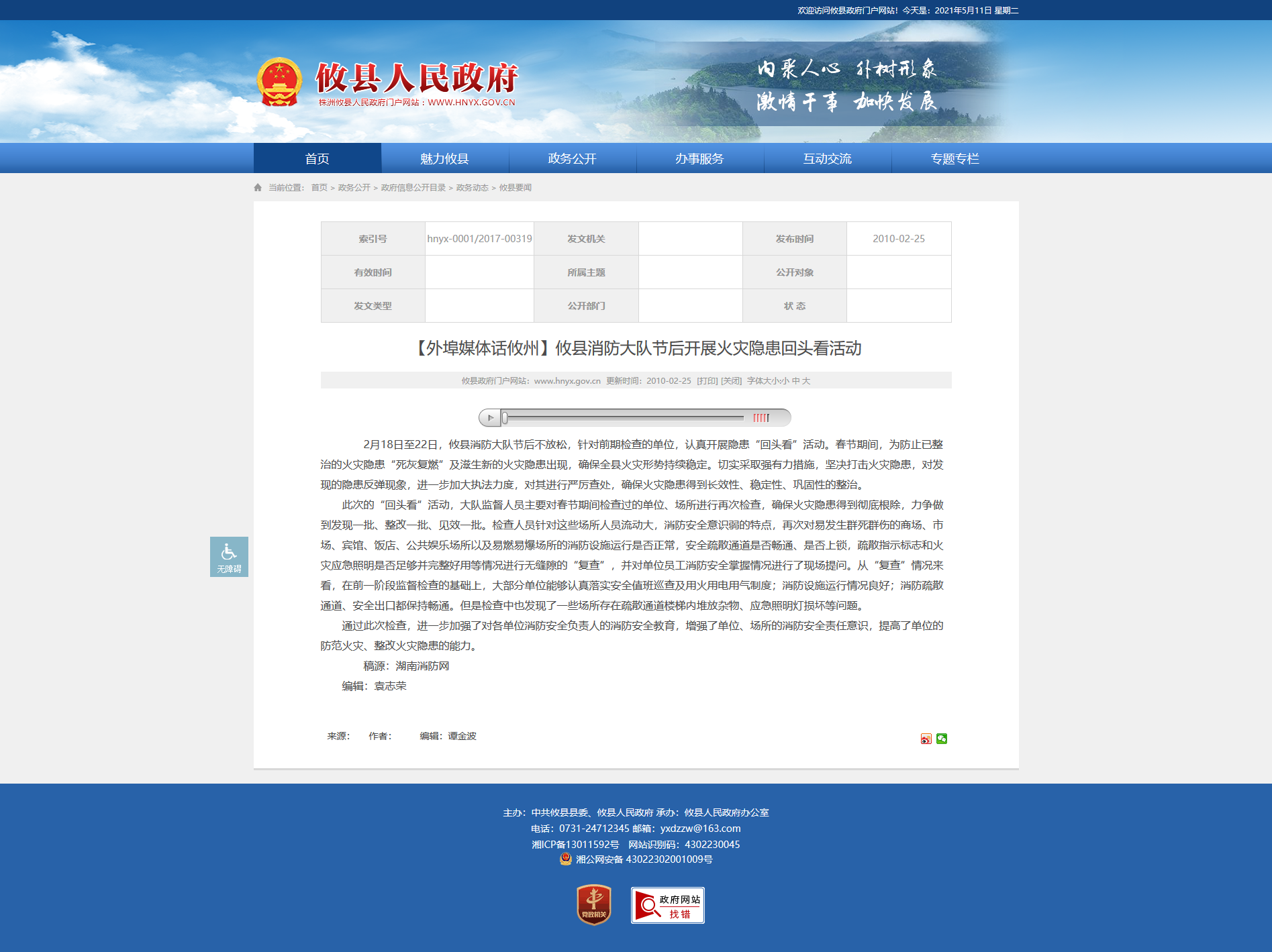 2月18日至22日,攸县消防大队节后不放松,针对前期检查的单位,认真开展隐患“回头看”活动。春节期间,为防止已整治的火灾隐患“死灰复燃”及滋生新的火灾隐患出现,确保全县火灾形势持续稳定。切实采取强有力措施,坚决打击火灾隐患,对发现的隐患反弹现象,进一步加大执法力度,对其进行严厉查处,确保火灾隐患得到长效性、稳定性、巩固性的整治。