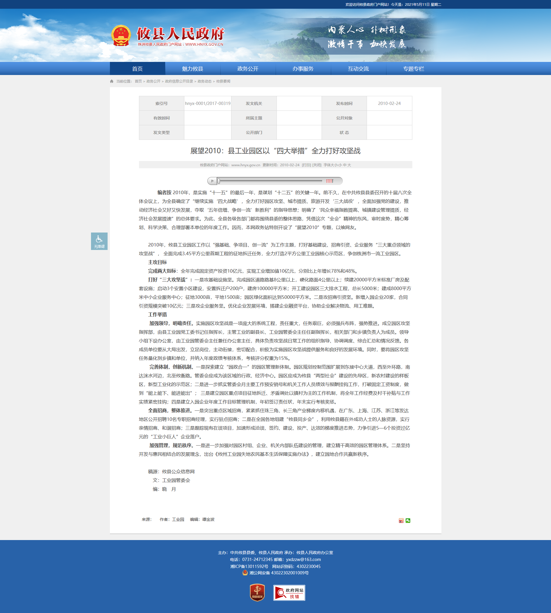 编者按 2010年,是实施“十一五”的最后一年,是谋划“十二五”的关键一年。前不久,在中共攸县县委召开的十届八次全体会议上,为全县确定了“继续实施‘四大战略’,全力打好园区攻坚、城市提质、旅游开发‘三大战役’,全面加强党的建设,推动经济社会又好又快发展,夺取‘五年倍增、争创一流’新胜利”的指导思想;明确了‘民众幸福指数提高、城镇建设管理提质,经济社会发展提速”的总体要求。为此,全县各级各部门都将围绕县委的整体思路,凭借这次“全会”精神的东风,审时度势,精心筹划、科学决策、合理部署本单位的年度工作。因而,本网政务站特别开设了“展望2010”专题,以飨网友。