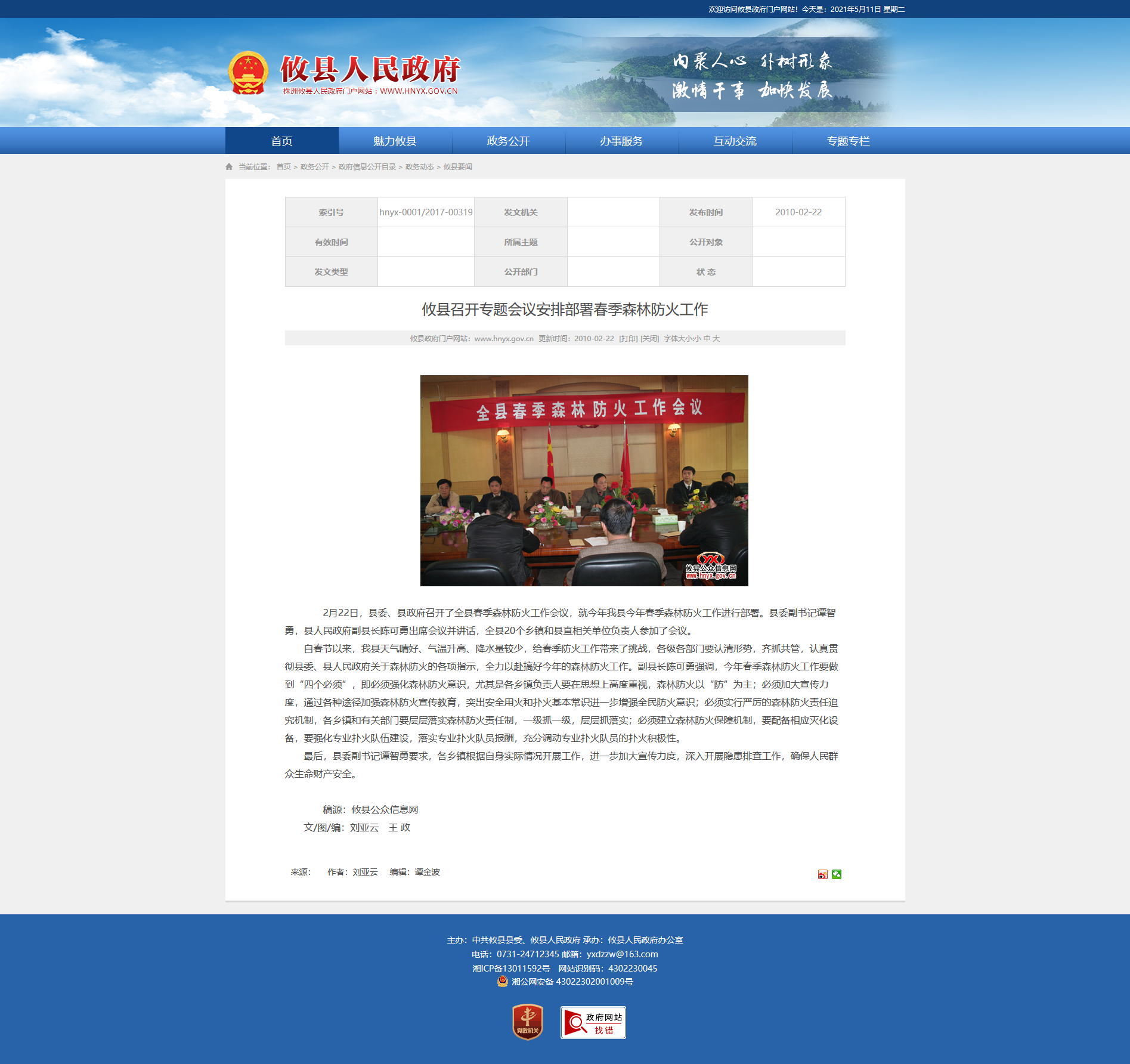 2月22日,县委、县政府召开了全县春季森林防火工作会议,就今年我县今年春季森林防火工作进行部署。县委副书记谭智勇,县人民政府副县长陈可勇出席会议并讲话,全县20个乡镇和县直相关单位负责人参加了会议。