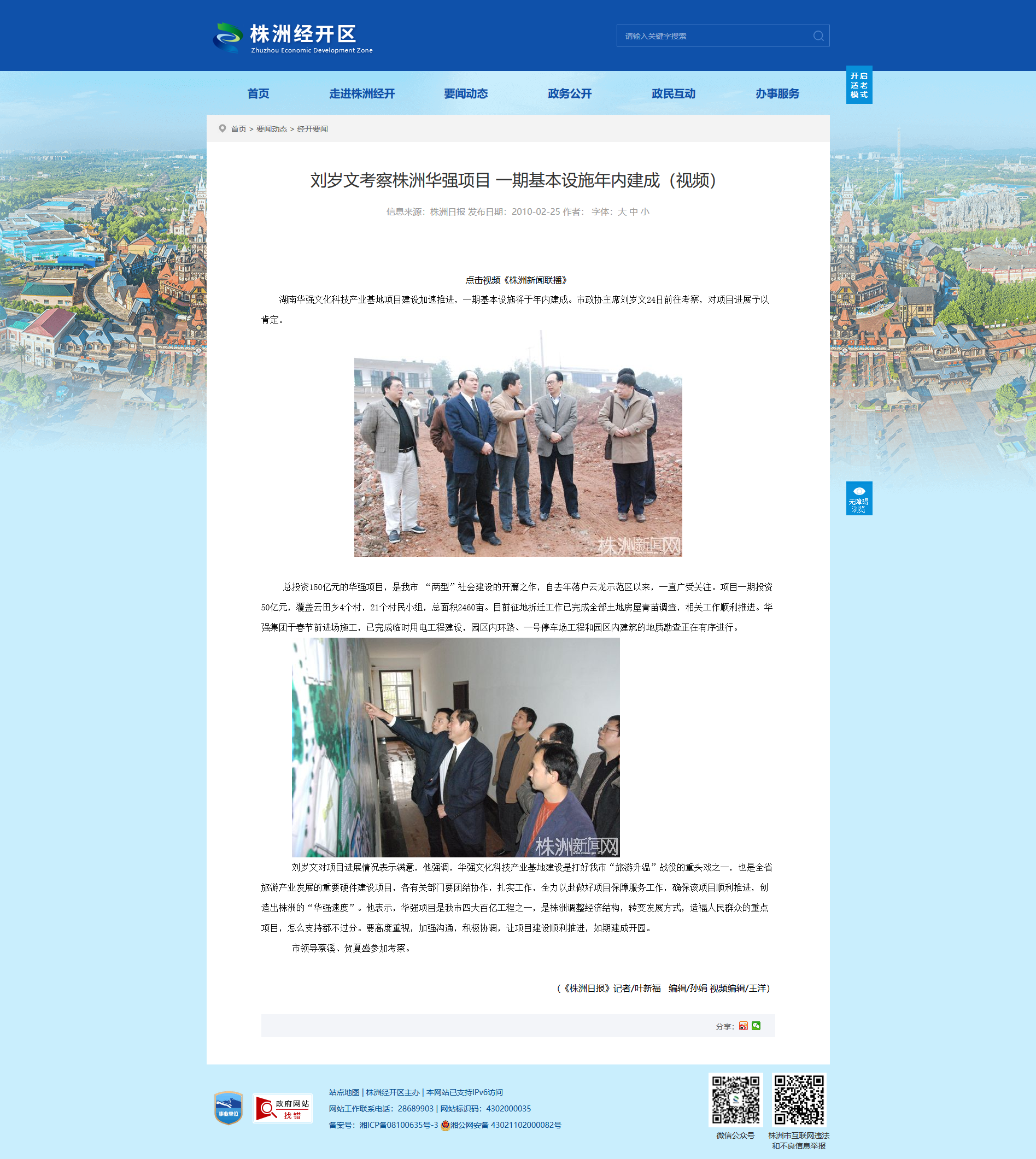 刘岁文对项目进展情况表示满意,他强调,华强文化科技产业基地建设是打好我市“旅游升温”战役的重头戏之一,也是全省旅游产业发展的重要硬件建设项目,各有关部门要团结协作,扎实工作,全力以赴做好项目保障服务工作,确保该项目顺利推进,创造出株洲的“华强速度”。他表示,华强项目是我市四大百亿工程之一,是株洲调整经济结构,转变发展方式,造福人民群众的重点项目,怎么支持都不过分。要高度重视,加强沟通,积极协调,让项目建设顺利推进,如期建成开园。