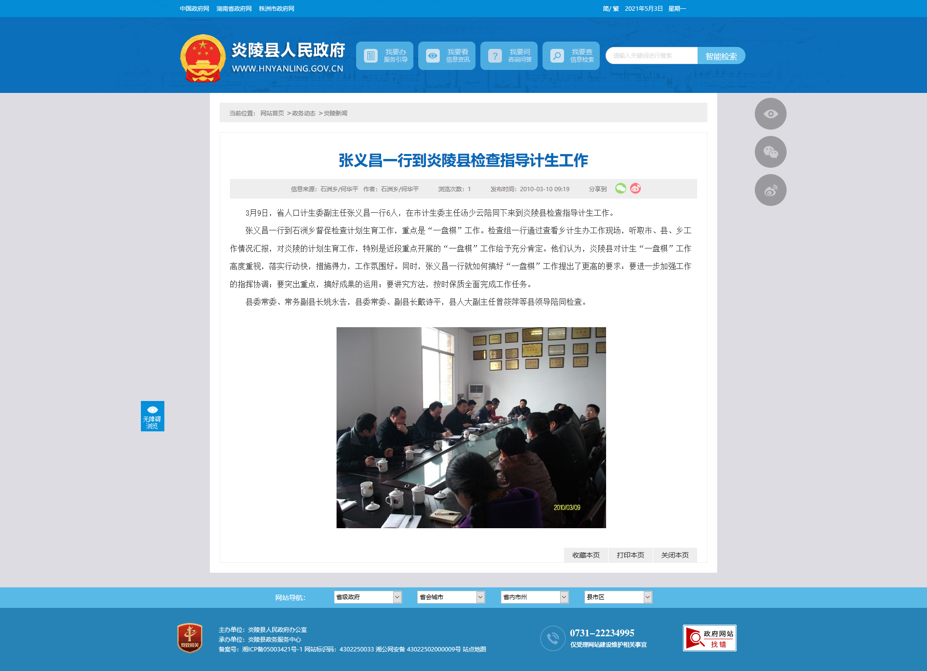 张义昌一行到石洲乡督促检查计划生育工作,重点是“一盘棋”工作。检查组一行通过查看乡计生办工作现场,听取市、县、乡工作情况汇报,对炎陵的计划生育工作,特别是近段重点开展的“一盘棋”工作给予充分肯定。他们认为,炎陵县对计生“一盘棋”工作高度重视,落实行动快,措施得力,工作氛围好。同时,张义昌一行就如何搞好“一盘棋”工作提出了更高的要求:要进一步加强工作的指挥协调;要突出重点,搞好成果的运用;要讲究方法,按时保质全面完成工作任务。