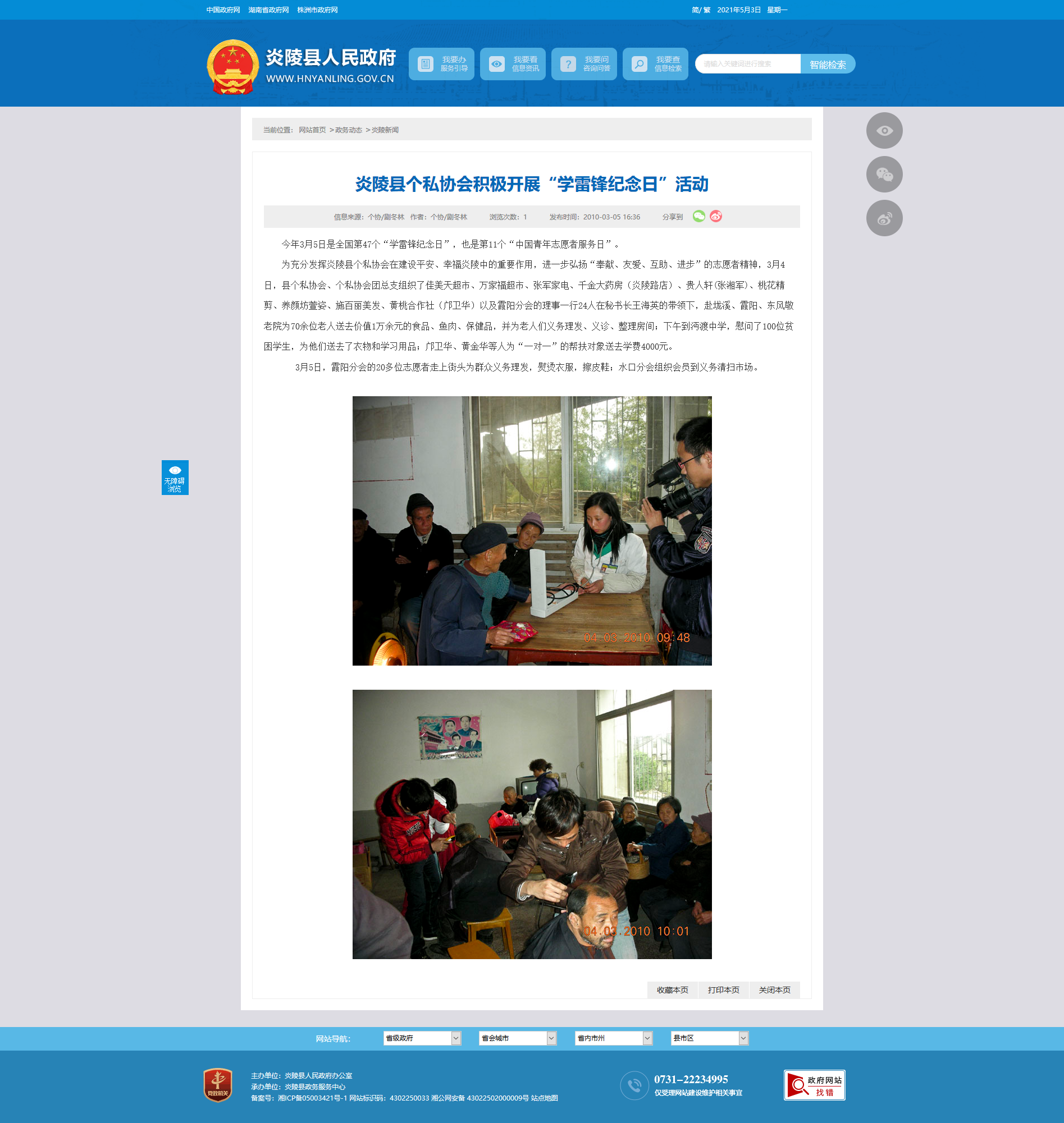 3月5日,霞阳分会的20多位志愿者走上街头为群众义务理发,熨烫衣服,擦皮鞋;水口分会组织会员到义务清扫市场。