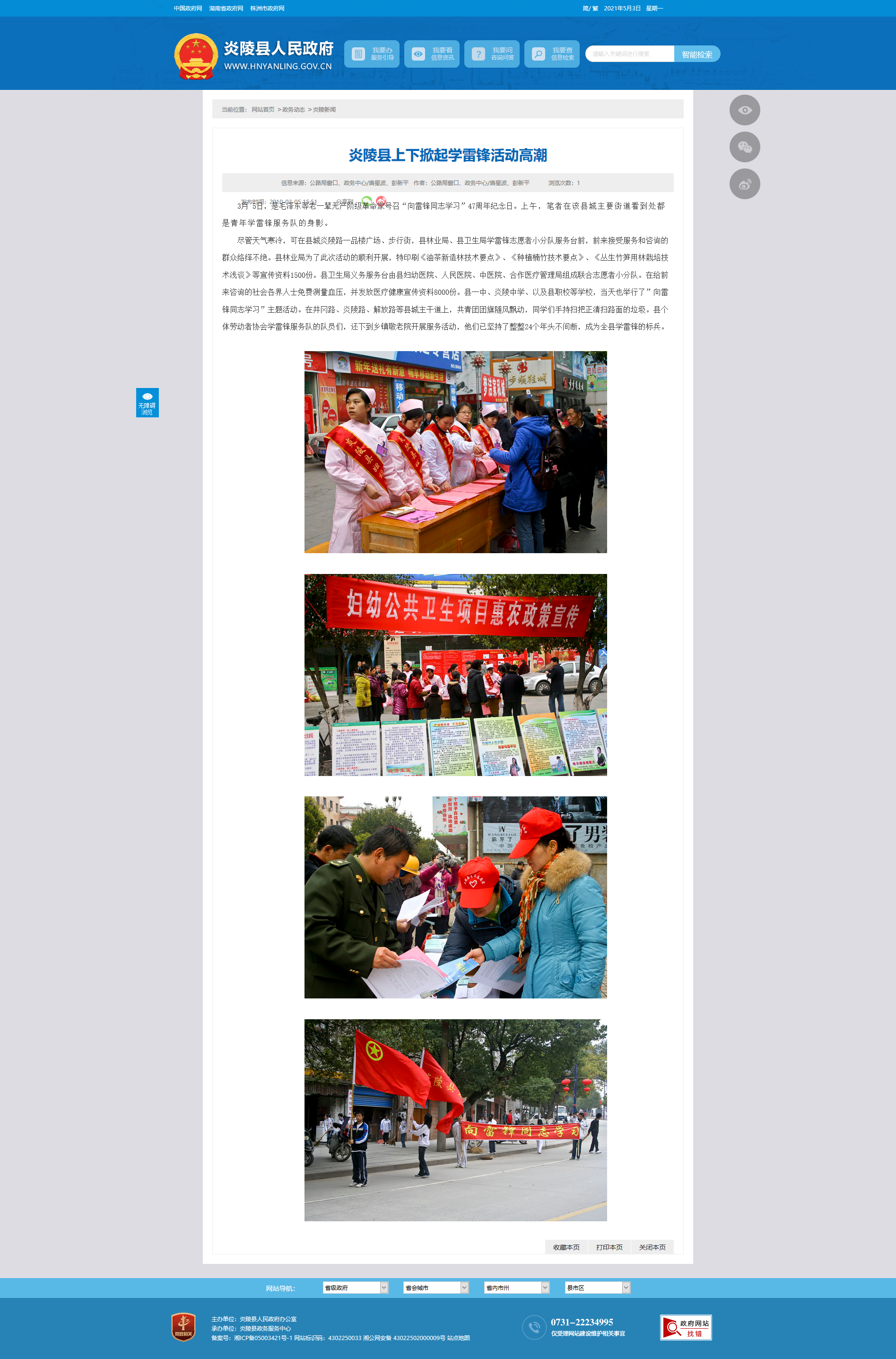 尽管天气寒冷,可在县城炎陵路一品楼广场、步行街,县林业局、县卫生局学雷锋志愿者小分队服务台前,前来接受服务和咨询的群众络绎不绝。县林业局为了此次活动的顺利开展,特印刷《油茶新造林技术要点》、《种植楠竹技术要点》、《丛生竹笋用林栽培技术浅谈》等宣传资料1500份。县卫生局义务服务台由县妇幼医院、人民医院、中医院、合作医疗管理局组成联合志愿者小分队。在给前来咨询的社会各界人士免费测量血压,并发放医疗健康宣传资料8000份。县一中、炎陵中学、以及县职校等学校,当天也举行了”向雷锋同志学习”主题活动。在井冈路、炎陵路、解放路等县城主干道上,共青团团旗随风飘动,同学们手持扫把正清扫路面的垃圾。县个体劳动者协会学雷锋服务队的队员们,还下到乡镇敬老院开展服务活动,他们已坚持了整整24个年头不间断,成为全县学雷锋的标兵。