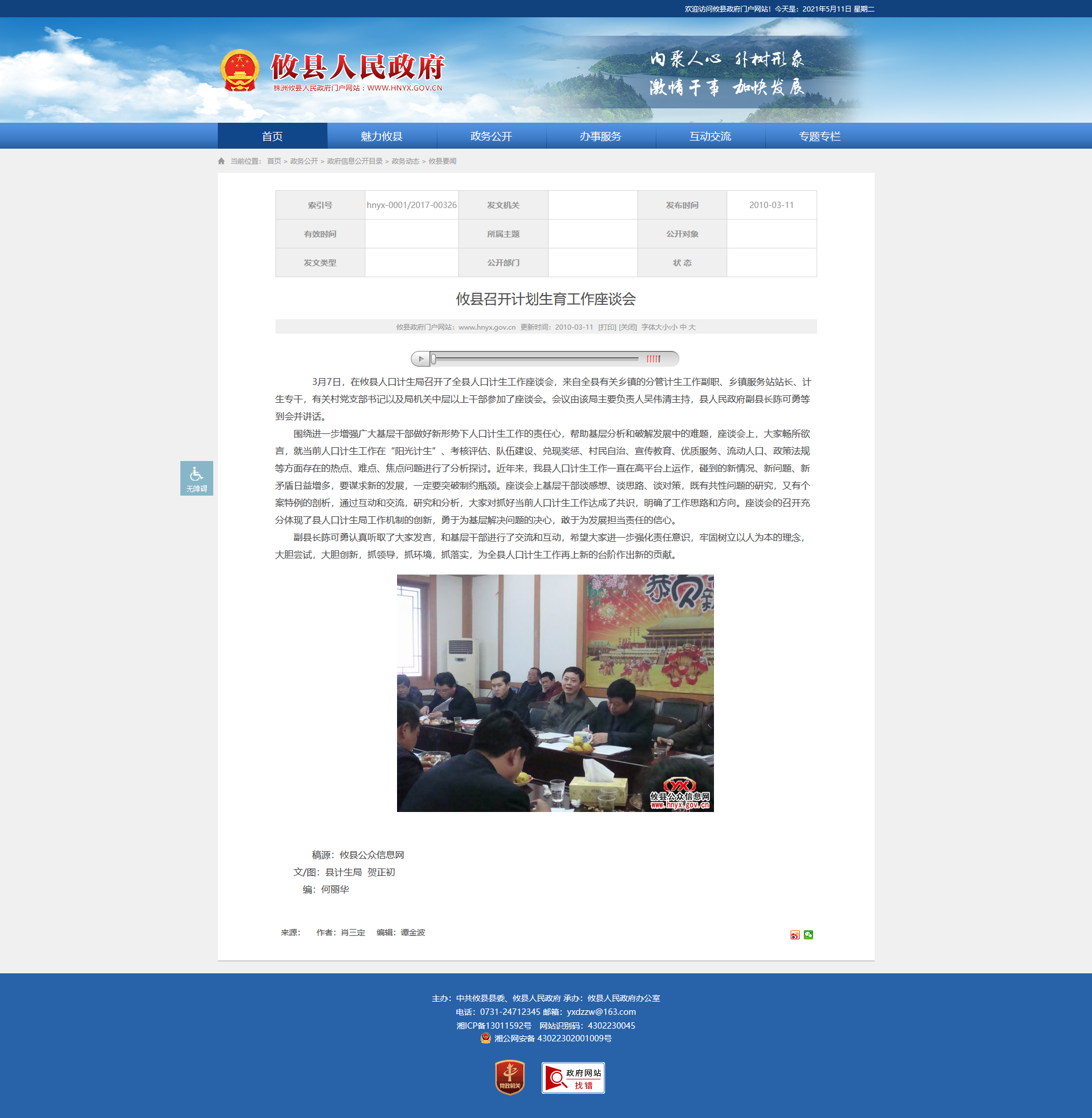 3月7日,在攸县人口计生局召开了全县人口计生工作座谈会,来自全县有关乡镇的分管计生工作副职、乡镇服务站站长、计生专干,有关村党支部书记以及局机关中层以上干部参加了座谈会。会议由该局主要负责人吴伟清主持,县人民政府副县长陈可勇等到会并讲话。