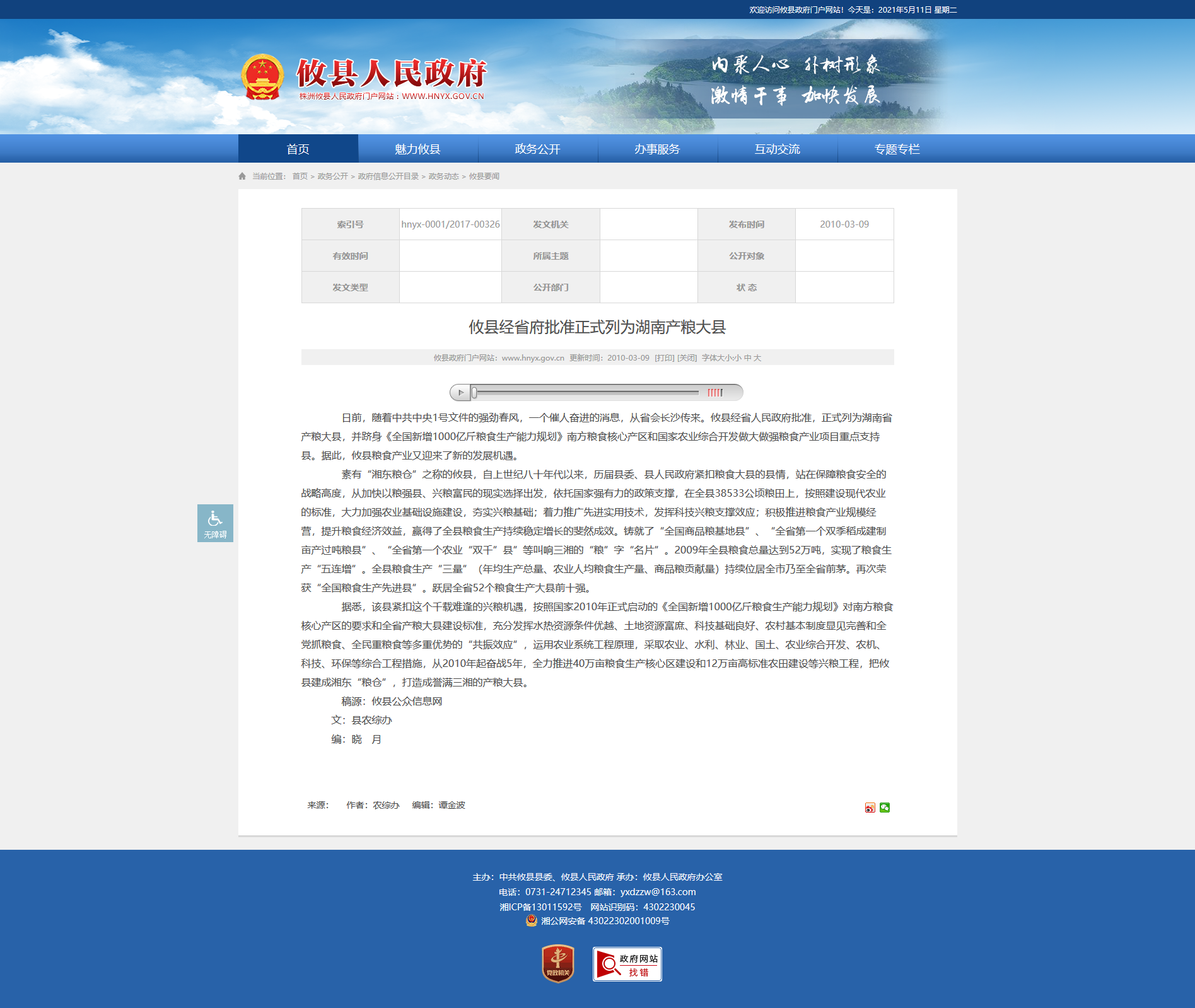 日前,随着中共中央1号文件的强劲春风,一个催人奋进的消息,从省会长沙传来。攸县经省人民政府批准,正式列为湖南省产粮大县,并跻身《全国新增1000亿斤粮食生产能力规划》南方粮食核心产区和国家农业综合开发做大做强粮食产业项目重点支持县。据此,攸县粮食产业又迎来了新的发展机遇。