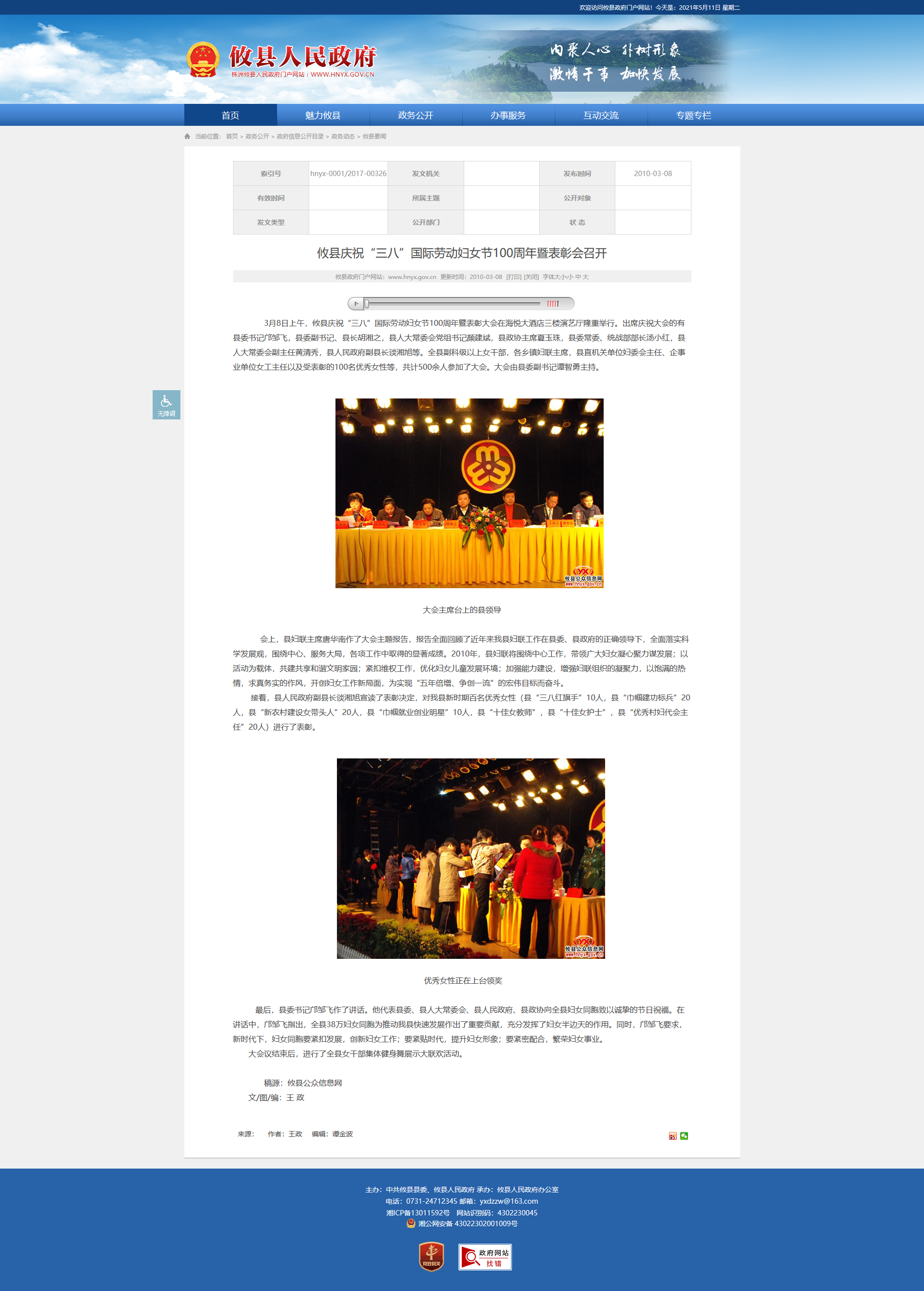 接着,县人民政府副县长谈湘旭宣读了表彰决定,对我县新时期百名优秀女性(县“三八红旗手”10人,县“巾帼建功标兵”20人,县“新农村建设女带头人”20人,县“巾帼就业创业明星”10人,县“十佳女教师”,县“十佳女护士”,县“优秀村妇代会主任”20人)进行了表彰。