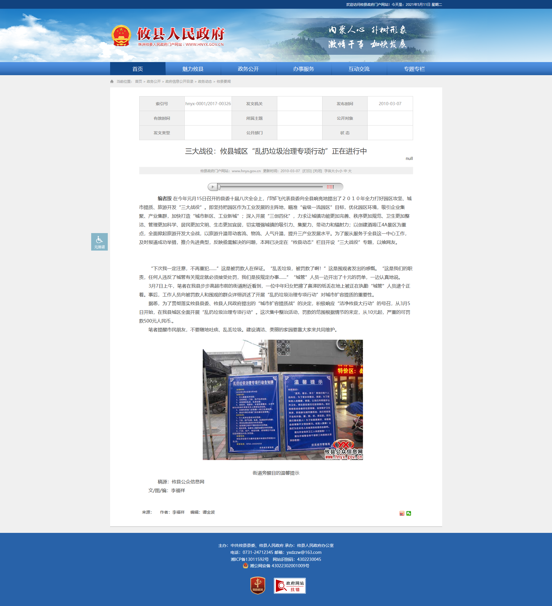3月7日上午,笔者在我县步步高超市前的街道附近看到,一位中年妇女把擦了鼻涕的纸丢在地上被正在执勤“城管”人员逮个正着。事后,工作人员向被罚款人和围观的群众详细讲述了开展“乱扔垃圾治理专项行动”对城市扩容提质的重要性。