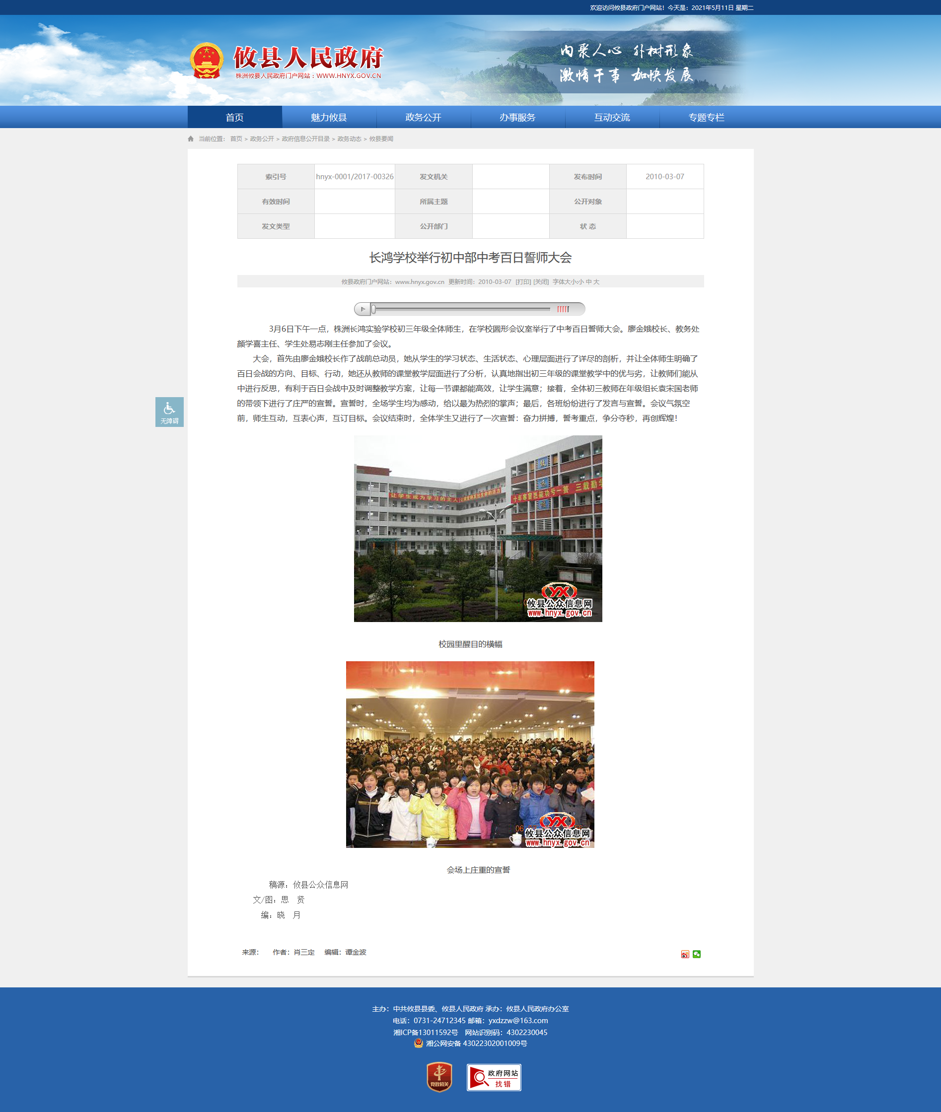 3月6日下午一点,株洲长鸿实验学校初三年级全体师生,在学校圆形会议室举行了中考百日誓师大会。廖金娥校长、教务处颜学喜主任、学生处易志刚主任参加了会议。