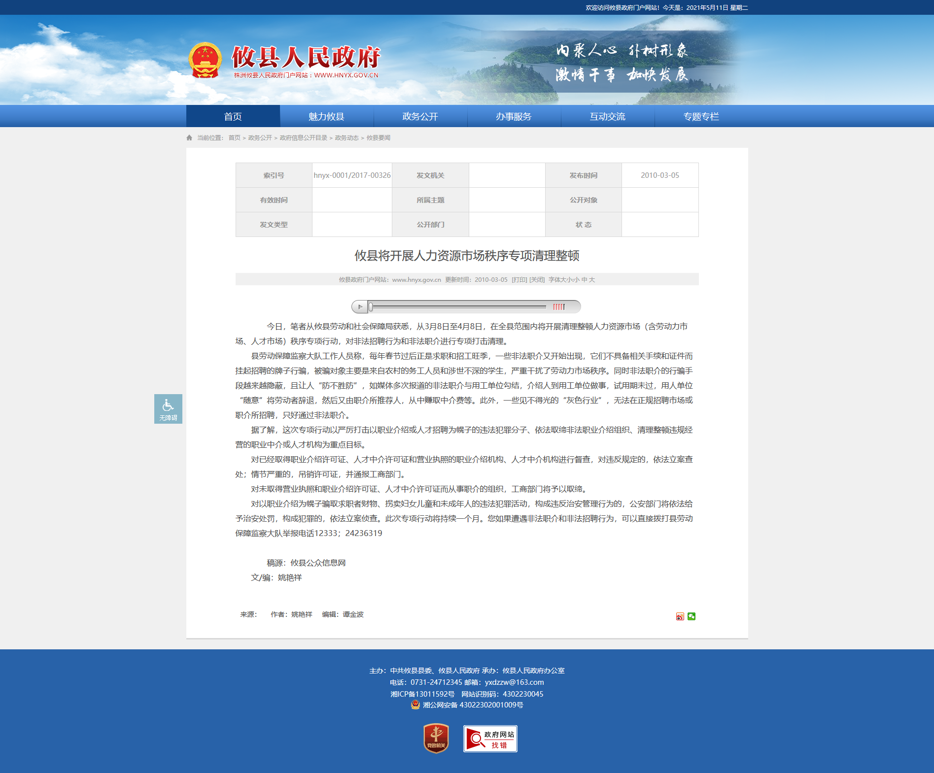 今日,笔者从攸县劳动和社会保障局获悉,从3月8日至4月8日,在全县范围内将开展清理整顿人力资源市场(含劳动力市场、人才市场)秩序专项行动,对非法招聘行为和非法职介进行专项打击清理。