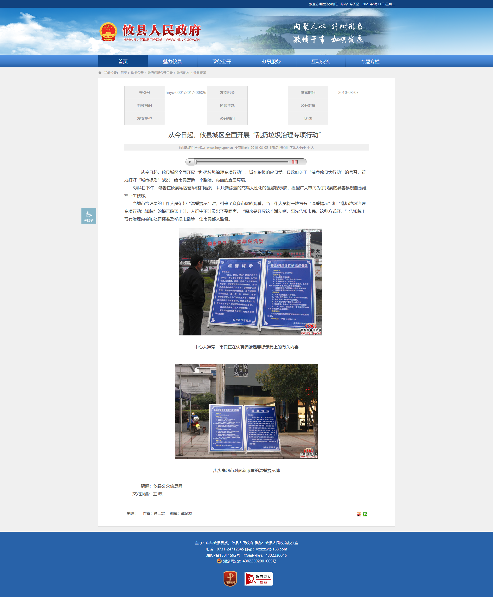 从今日起,攸县城区全面开展“乱扔垃圾治理专项行动”,旨在积极响应县委、县政府关于“洁净攸县大行动”的号召,着力打好“城市提质”战役,给市民营造一个整洁、亮丽的宜居环境。