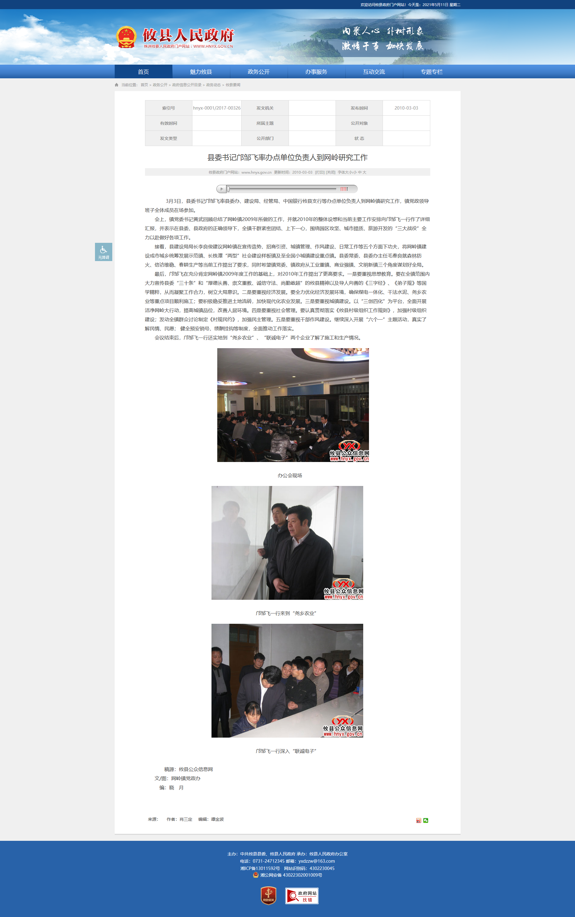 3月3日,县委书记邝邹飞率县委办、建设局、经管局、中国银行攸县支行等办点单位负责人到网岭镇研究工作,镇党政领导班子全体成员在场参加。