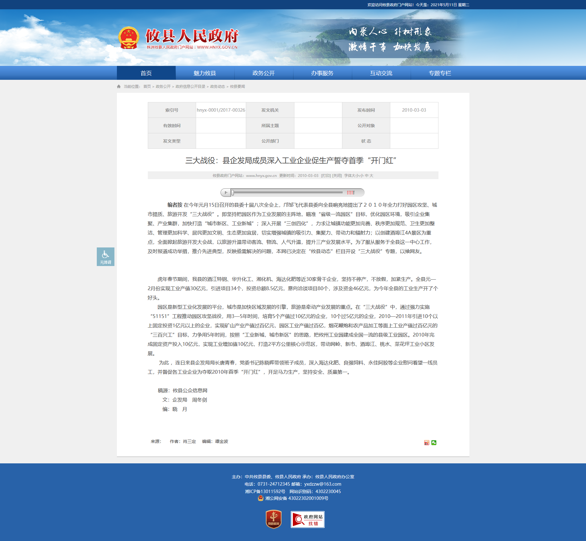编者按 在今年元月15日召开的县委十届八次全会上,邝邹飞代表县委向全县响亮地提出了2010年全力打好园区攻坚、城市提质、旅游开发“三大战役”。即坚持把园区作为工业发展的主阵地,瞄准“省级一流园区”目标,优化园区环境,吸引企业集聚、产业集群,加快打造“城市新区、工业新城”;深入开展“三创四化”,力求让城镇功能更加完善、秩序更加规范、卫生更加整洁、管理更加科学、居民更加文明、生态更加宜居,切实增强城镇的吸引力、集聚力、带动力和辐射力;以创建酒埠江4A景区为重点,全面掀起旅游开发大会战,以旅游升温带动客流、物流、人气升温,提升三产业发展水平。为了服从服务于全县这一中心工作,及时报道成功举措,推介先进典型,反映亟需解决的问题,本网已决定在“攸县动态”栏目开设“三大战役”专题,以飨网友。