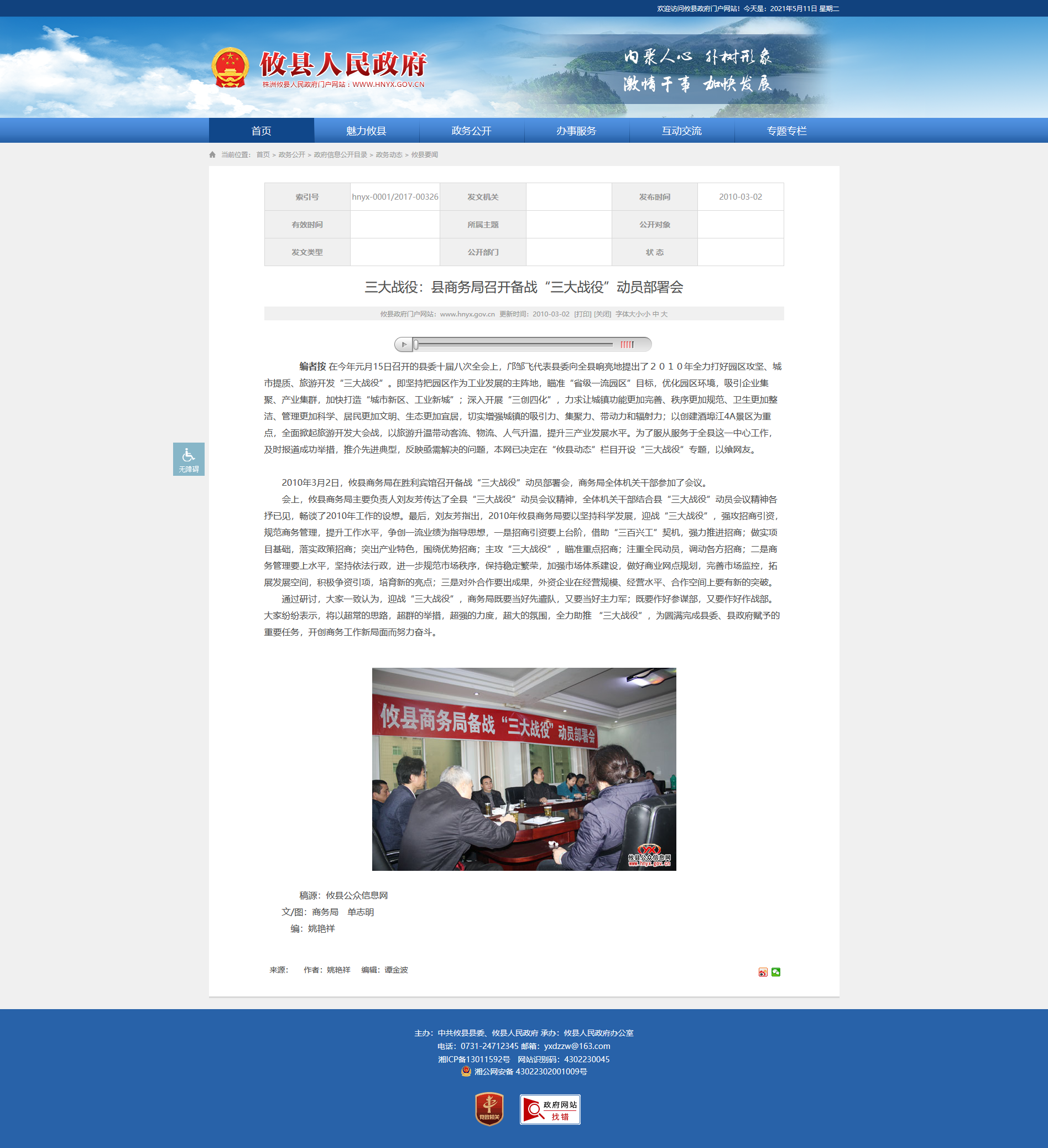 2010年3月2日,攸县商务局在胜利宾馆召开备战“三大战役”动员部署会,商务局全体机关干部参加了会议。