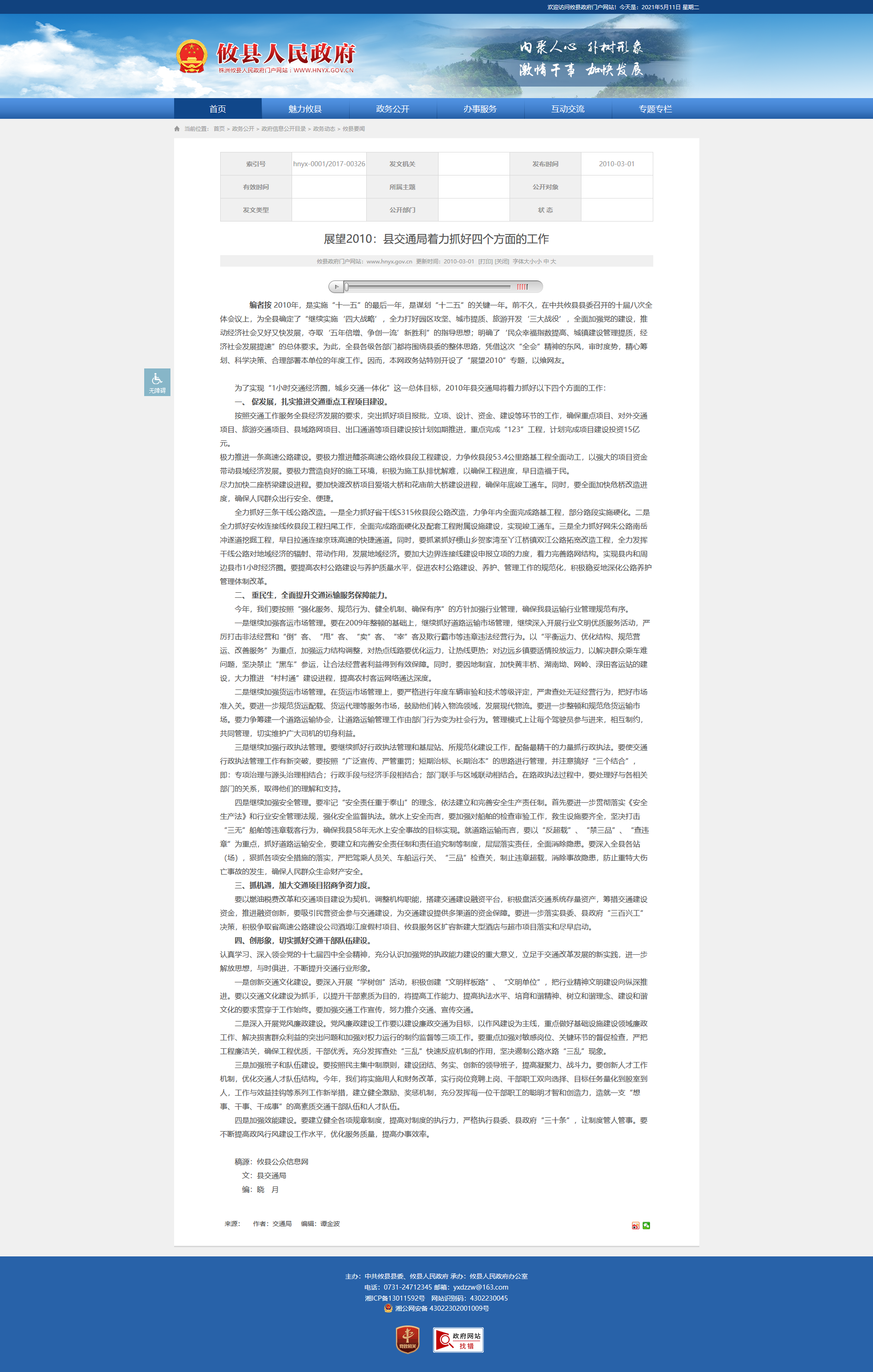 编者按 2010年,是实施“十一五”的最后一年,是谋划“十二五”的关键一年。前不久,在中共攸县县委召开的十届八次全体会议上,为全县确定了“继续实施‘四大战略’,全力打好园区攻坚、城市提质、旅游开发‘三大战役’,全面加强党的建设,推动经济社会又好又快发展,夺取‘五年倍增、争创一流’新胜利”的指导思想;明确了‘民众幸福指数提高、城镇建设管理提质,经济社会发展提速”的总体要求。为此,全县各级各部门都将围绕县委的整体思路,凭借这次“全会”精神的东风,审时度势,精心筹划、科学决策、合理部署本单位的年度工作。因而,本网政务站特别开设了“展望2010”专题,以飨网友。