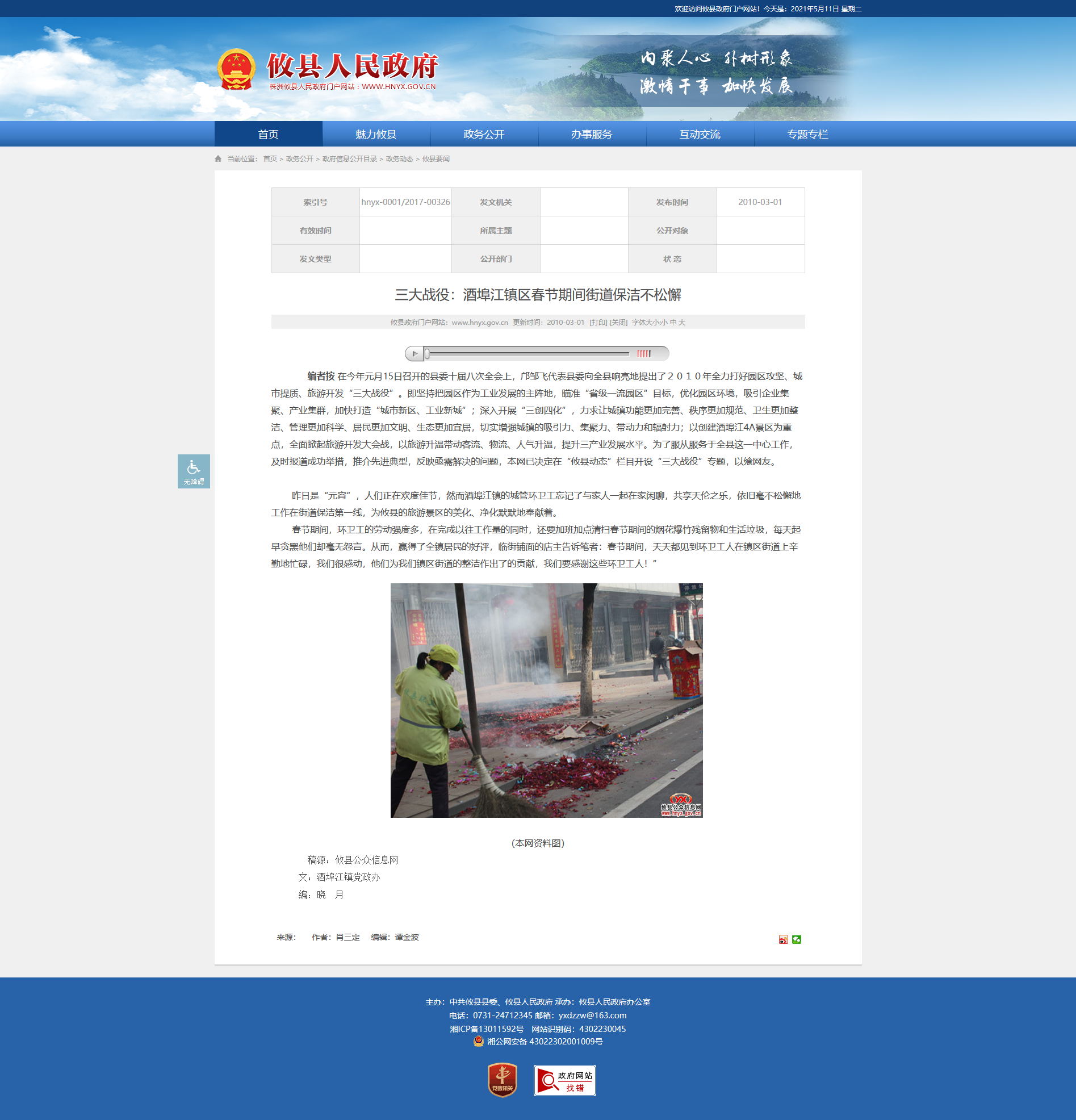 昨日是“元宵”,人们正在欢度佳节,然而酒埠江镇的城管环卫工忘记了与家人一起在家闲聊,共享天伦之乐,依旧毫不松懈地工作在街道保洁第一线,为攸县的旅游景区的美化、净化默默地奉献着。