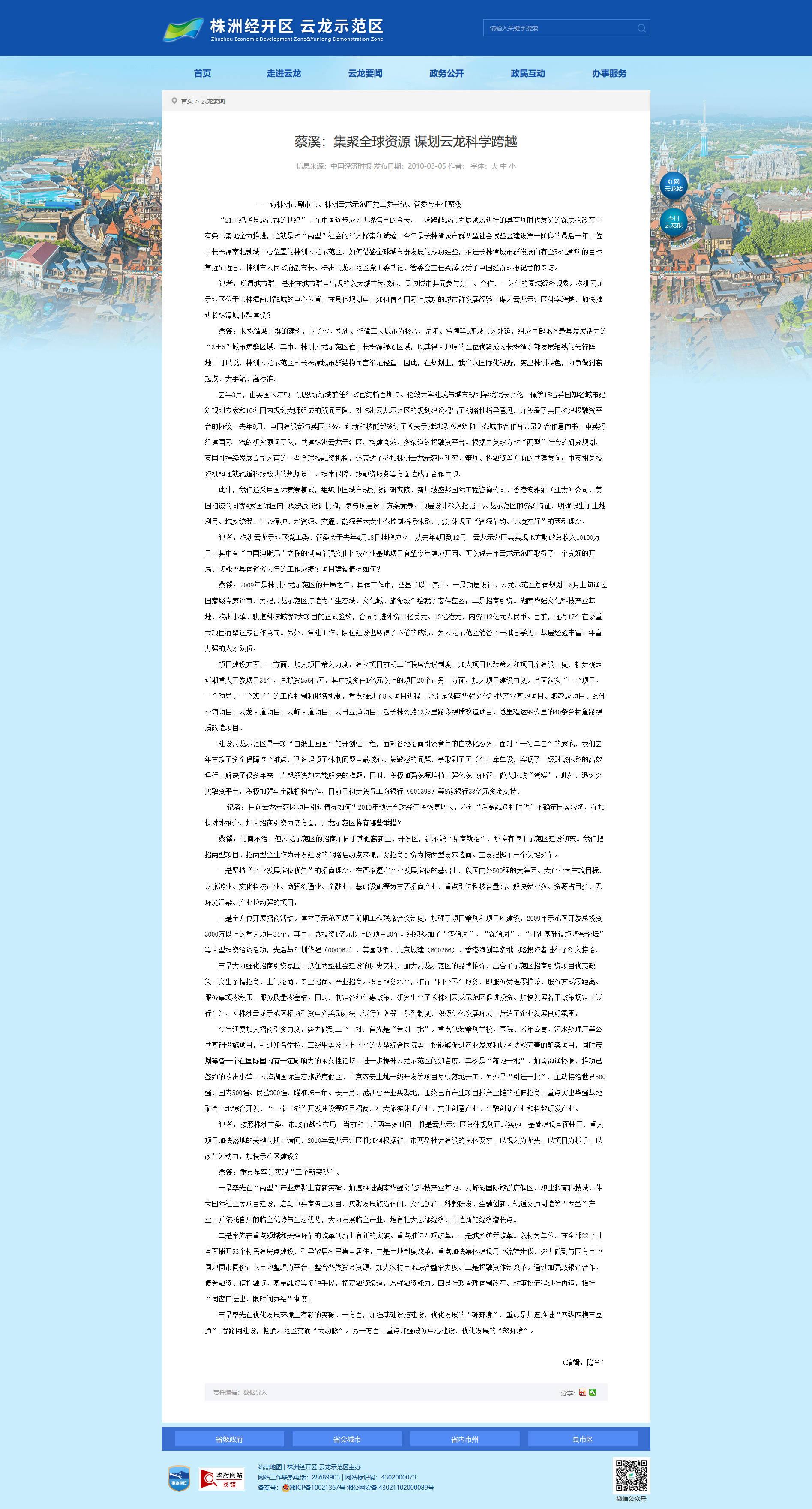 “21世纪将是城市群的世纪”,在中国逐步成为世界焦点的今天,一场跨越城市发展领域进行的具有划时代意义的深层次改革正有条不紊地全力推进,这就是对“两型”社会的深入探索和试验。今年是长株潭城市群两型社会试验区建设第一阶段的最后一年,位于长株潭南北融城中心位置的株洲云龙示范区,如何借鉴全球城市群发展的成功经验,推进长株潭城市群发展向有全球化影响的目标靠近?近日,株洲市人民政府副市长、株洲云龙示范区党工委书记、管委会主任蔡溪接受了中国经济时报记者的专访。