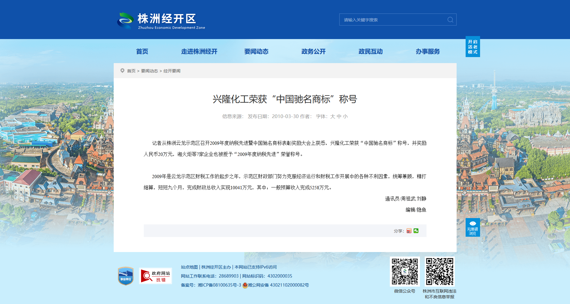 记者从株洲云龙示范区召开2009年度纳税先进暨中国驰名商标表彰奖励大会上获悉,兴隆化工荣获“中国驰名商标”称号,并奖励人民币20万元,湘火炬等7家企业也被授予“2009年度纳税先进”荣誉称号。