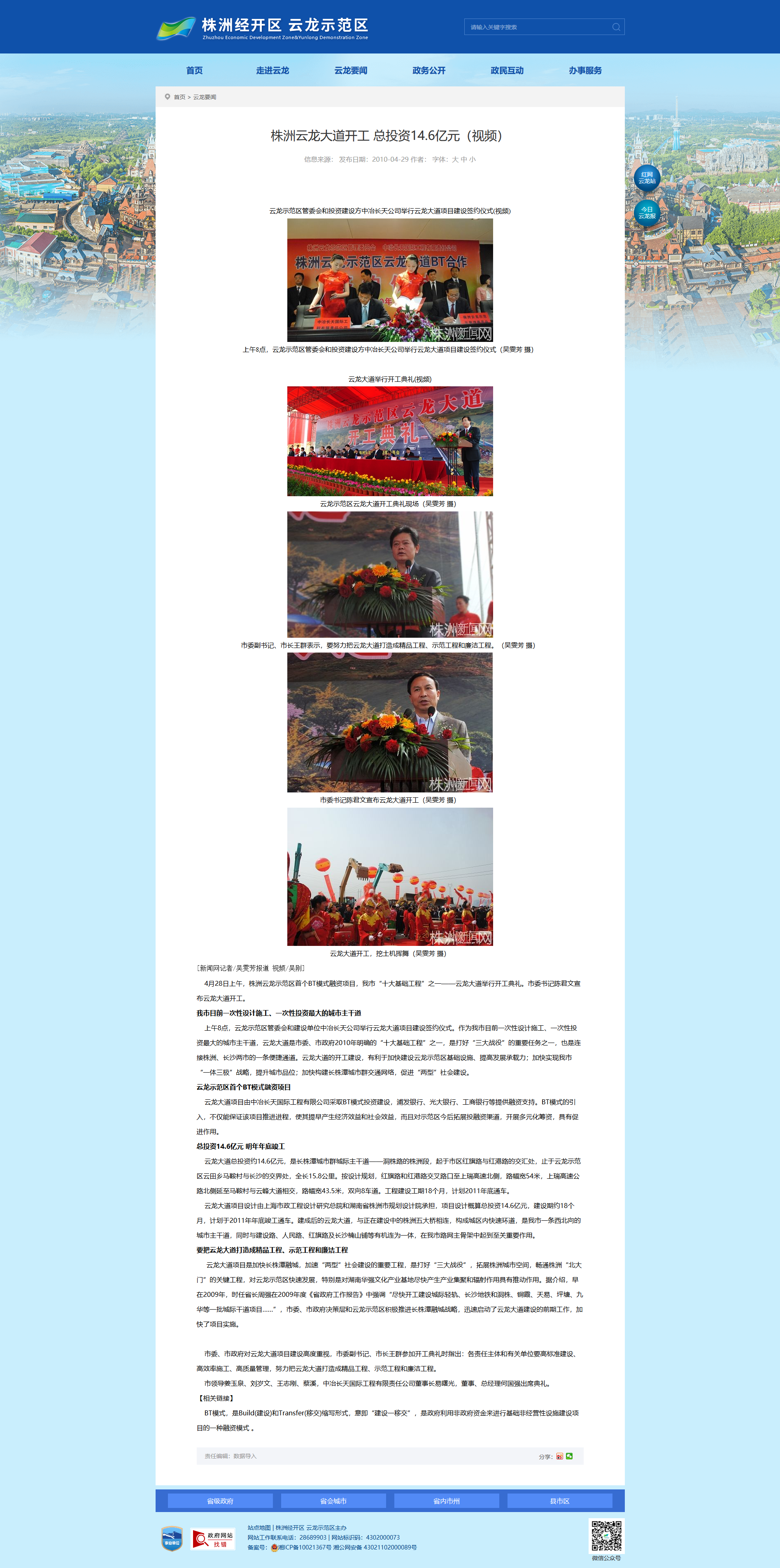 云龙大道项目是加快长株潭融城,加速“两型”社会建设的重要工程,是打好“三大战役”,拓展株洲城市空间,畅通株洲“北大门”的关键工程,对云龙示范区快速发展,特别是对湖南华强文化产业基地尽快产生产业集聚和辐射作用具有推动作用。据介绍,早在2009年,时任省长周强在2009年度《省政府工作报告》中强调“尽快开工建设城际轻轨、长沙地铁和洞株、铜霞、天易、坪塘、九华等一批城际干道项目……”,市委、市政府决策层和云龙示范区积极推进长株潭融城战略,迅速启动了云龙大道建设的前期工作,加快了项目实施。 市委、市政府对云龙大道项目建设高度重视,市委副书记、市长王群参加开工典礼时指出:各责任主体和有关单位要高标准建设、高效率施工、高质量管理,努力把云龙大道打造成精品工程、示范工程和廉洁工程。