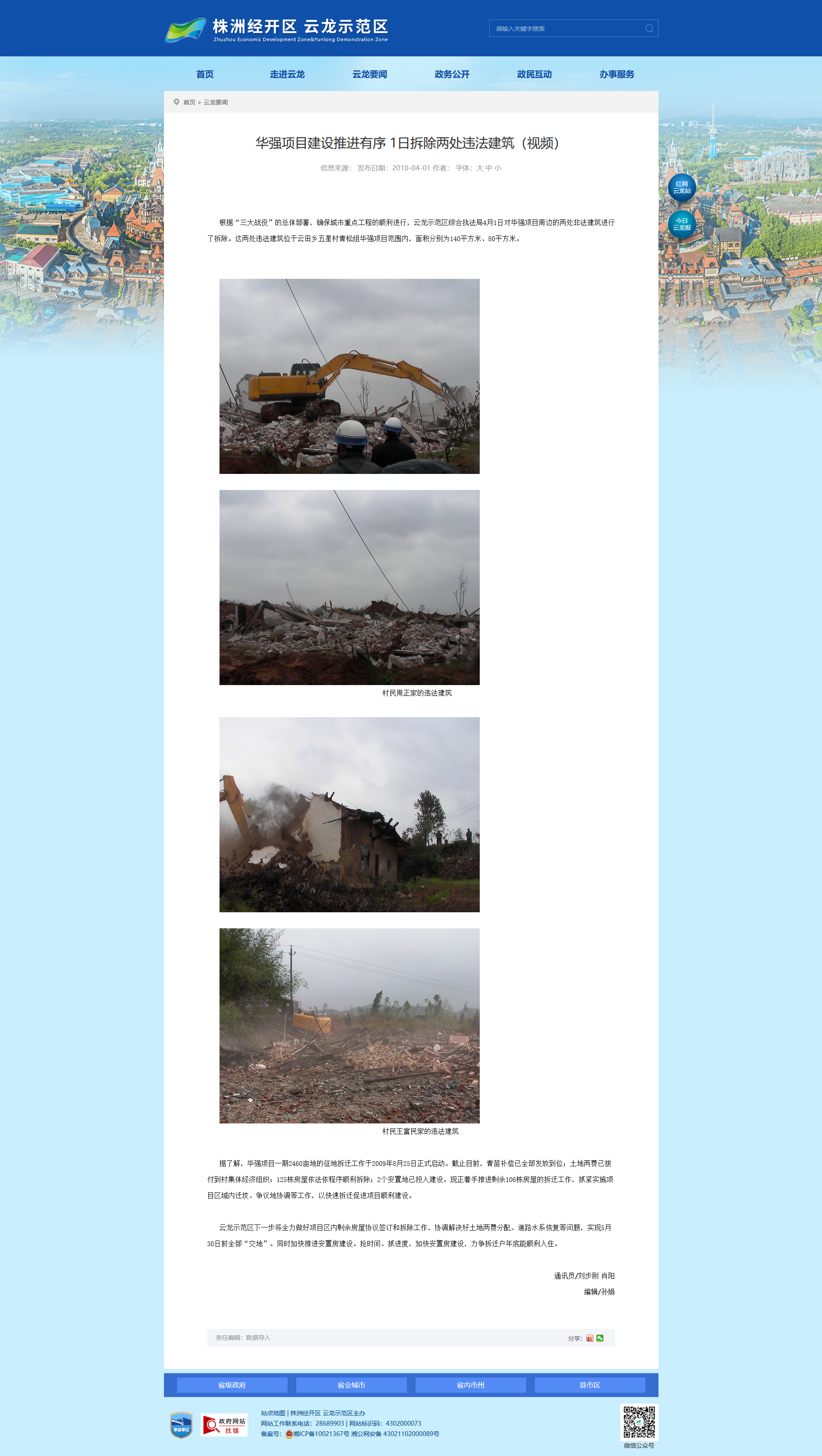 根据“三大战役”的总体部署,确保城市重点工程的顺利进行,云龙示范区综合执法局4月1日对华强项目周边的两处非法建筑进行了拆除。这两处违法建筑位于云田乡五星村青松组华强项目范围内,面积分别为140平方米、80平方米。