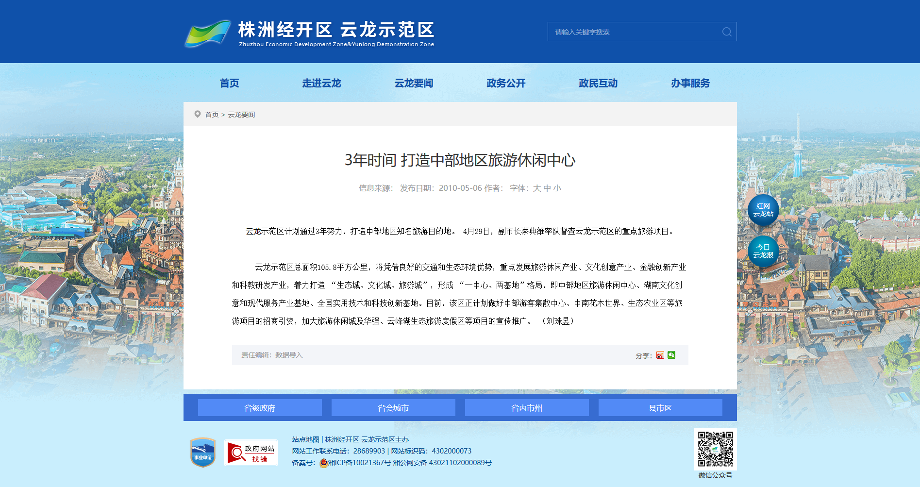 云龙示范区总面积105.8平方公里,将凭借良好的交通和生态环境优势,重点发展旅游休闲产业、文化创意产业、金融创新产业和科教研发产业,着力打造 “生态城、文化城、旅游城”,形成 “一中心、两基地”格局,即中部地区旅游休闲中心、湖南文化创意和现代服务产业基地、全国实用技术和科技创新基地。目前,该区正计划做好中部游客集散中心、中南花木世界、生态农业区等旅游项目的招商引资,加大旅游休闲城及华强、云峰湖生态旅游度假区等项目的宣传推广。 (刘珠昱)