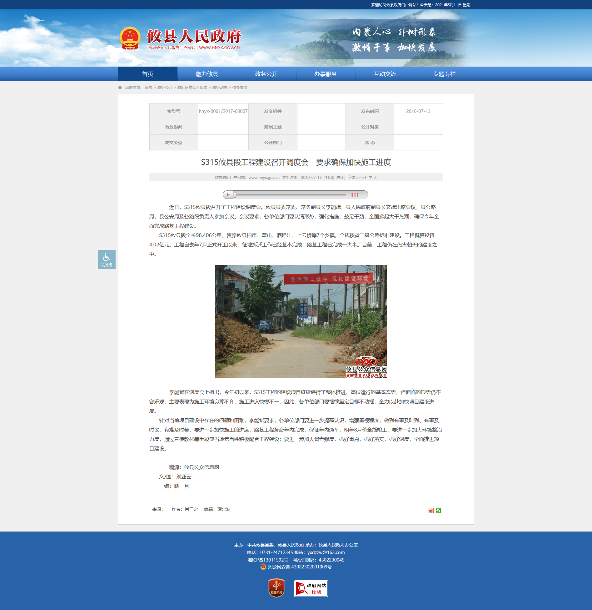 S315攸县段全长98.406公里,贯穿攸县柏市、鸾山、酒埠江、上云桥等7个乡镇,全线按省二级公路标准建设。工程概算投资4.02亿元。工程自去年7月正式开工以来,征地拆迁工作已经基本完成,路基工程已完成一大半。目前,工程仍在热火朝天的建设之中。