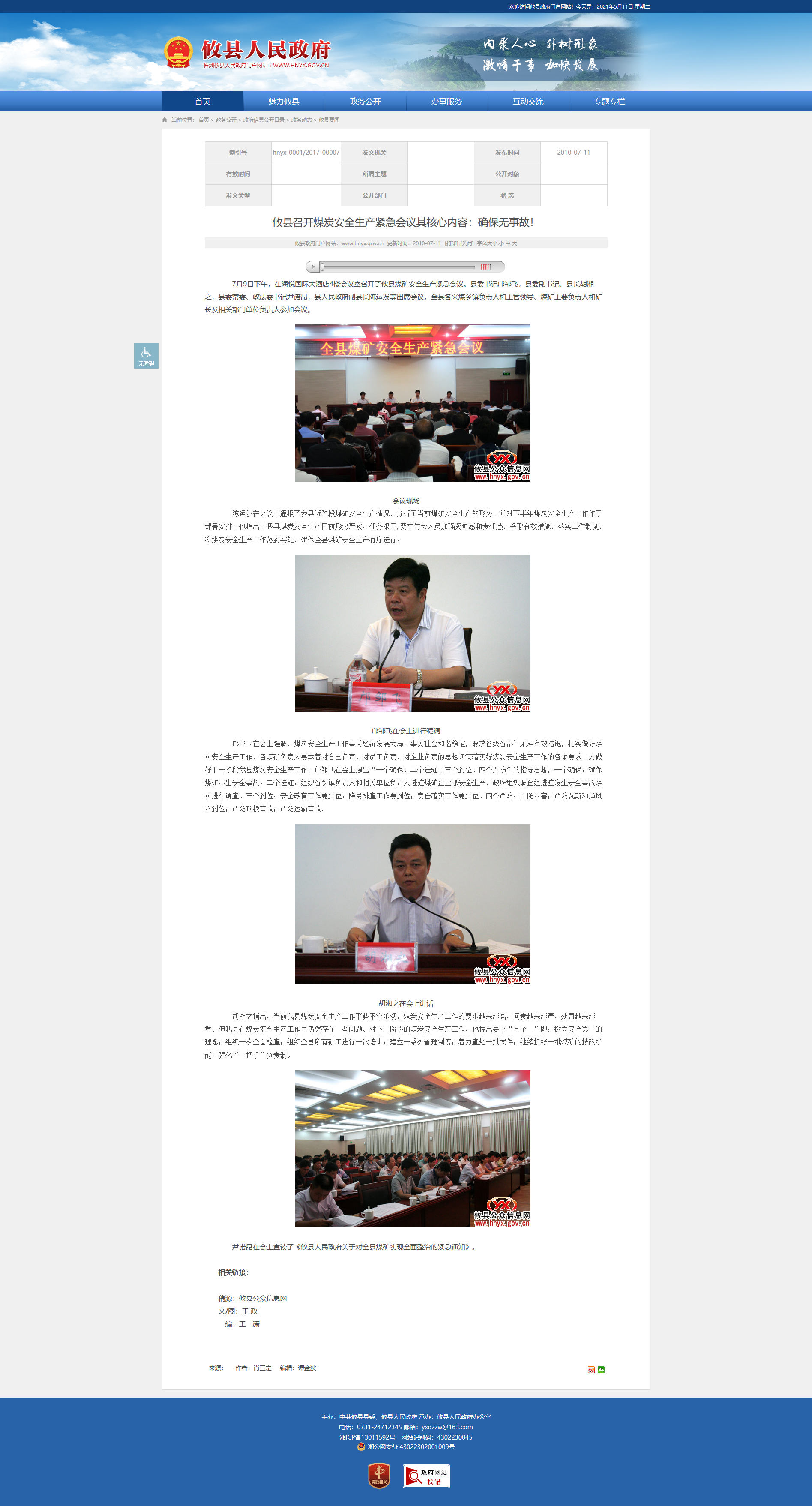 陈运发在会议上通报了我县近阶段煤矿安全生产情况,分析了当前煤矿安全生产的形势,并对下半年煤炭安全生产工作作了部署安排。他指出,我县煤炭安全生产目前形势严峻、任务艰巨,要求与会人员加强紧迫感和责任感,采取有效措施,落实工作制度,将煤炭安全生产工作落到实处,确保全县煤矿安全生产有序进行。