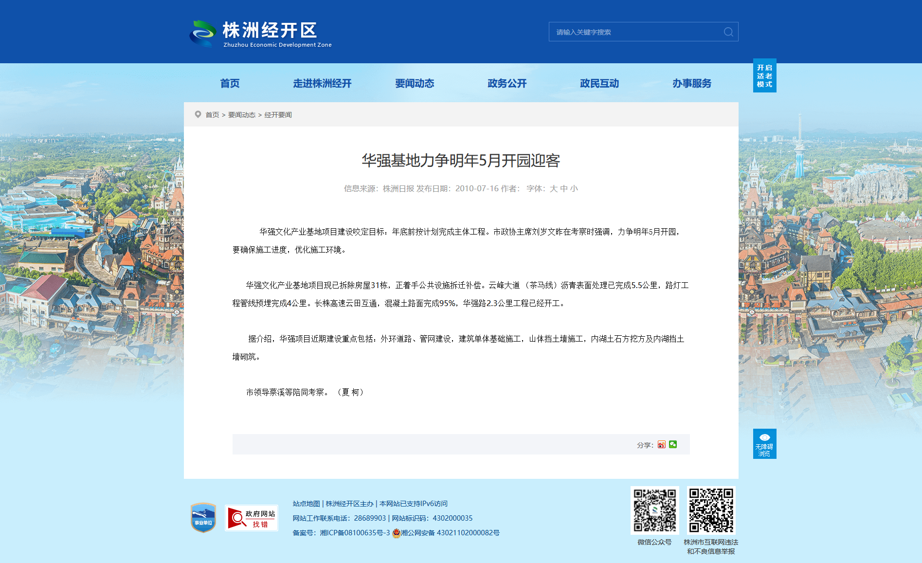 华强文化产业基地项目现已拆除房屋31栋,正着手公共设施拆迁补偿。云峰大道 (茶马线)沥青表面处理已完成5.5公里,路灯工程管线预埋完成4公里。长株高速云田互通,混凝土路面完成95%,华强路2.3公里工程已经开工。