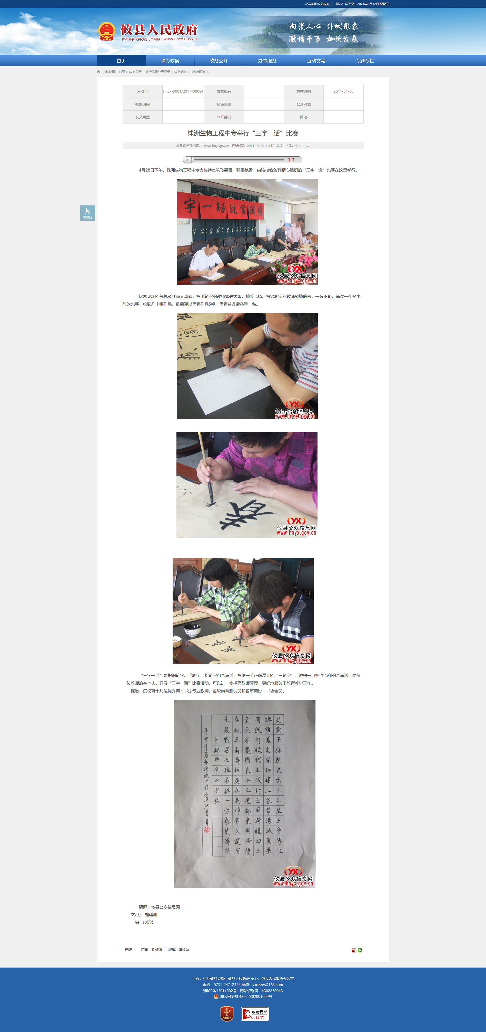 4月28日下午,株洲生物工程中专大接待室笔飞墨舞,翰墨飘香。由该校教务科精心组织的“三字一话”比赛在这里举行。