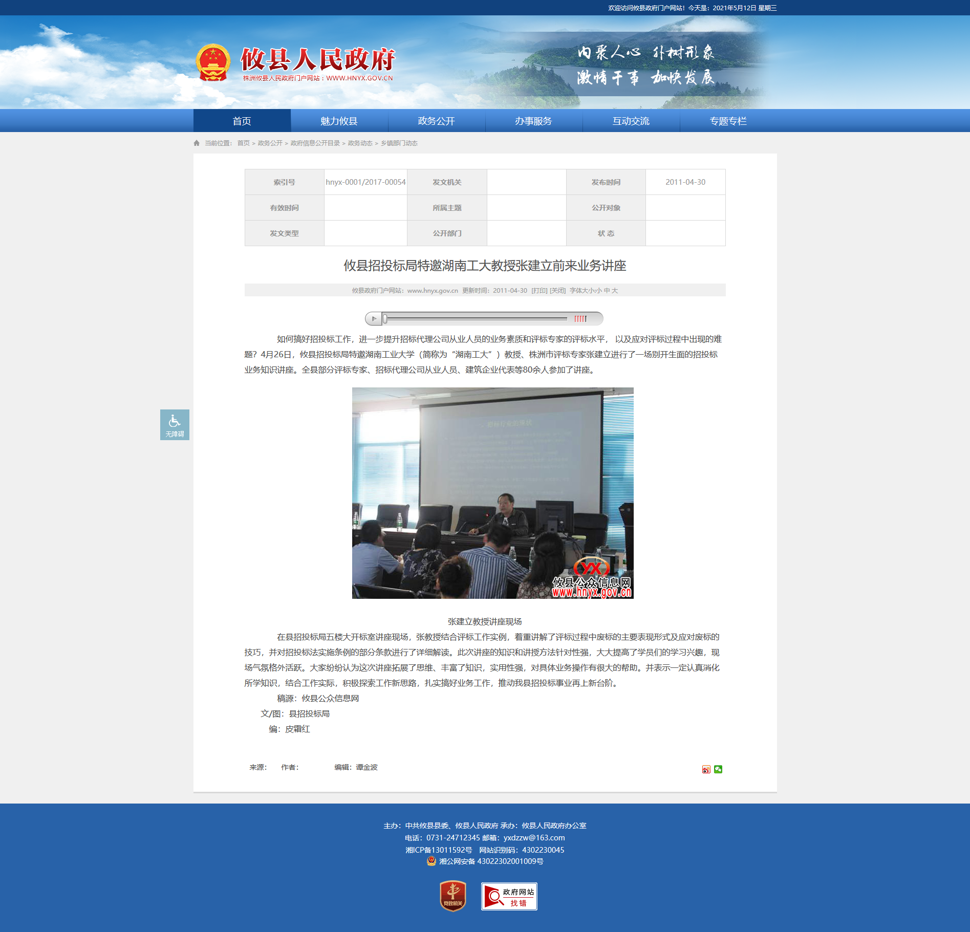 如何搞好招投标工作,进一步提升招标代理公司从业人员的业务素质和评标专家的评标水平, 以及应对评标过程中出现的难题?4月26日,攸县招投标局特邀湖南工业大学(简称为“湖南工大”)教授、株洲市评标专家张建立进行了一场别开生面的招投标业务知识讲座。全县部分评标专家、招标代理公司从业人员、建筑企业代表等80余人参加了讲座。