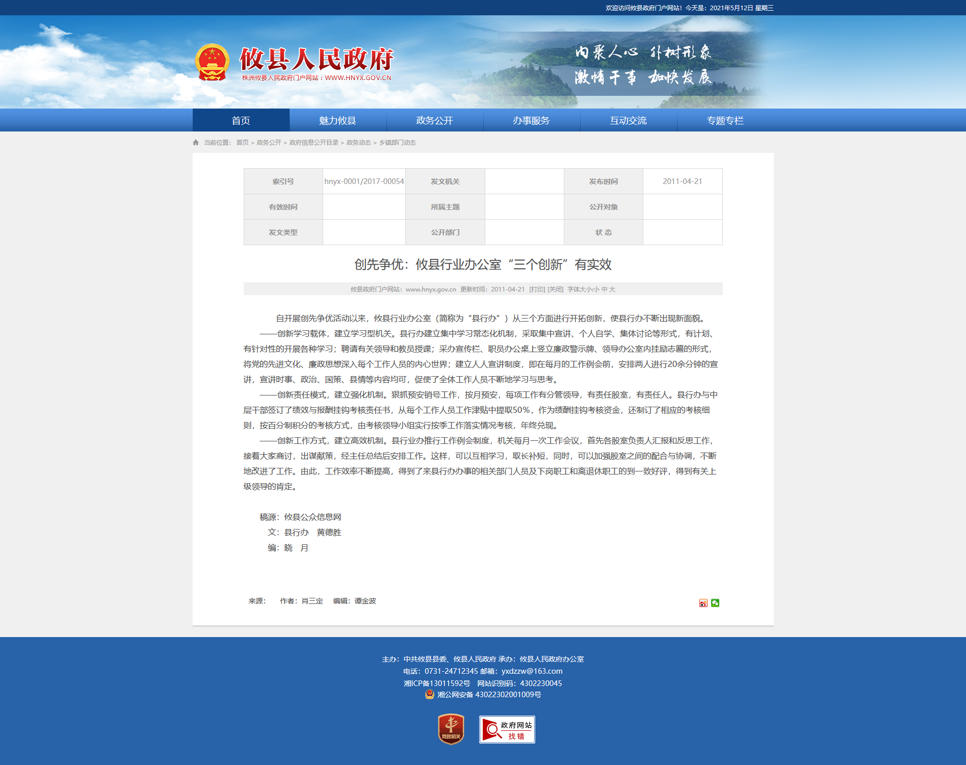 自开展创先争优活动以来,攸县行业办公室(简称为“县行办”)从三个方面进行开拓创新,使县行办不断出现新面貌。