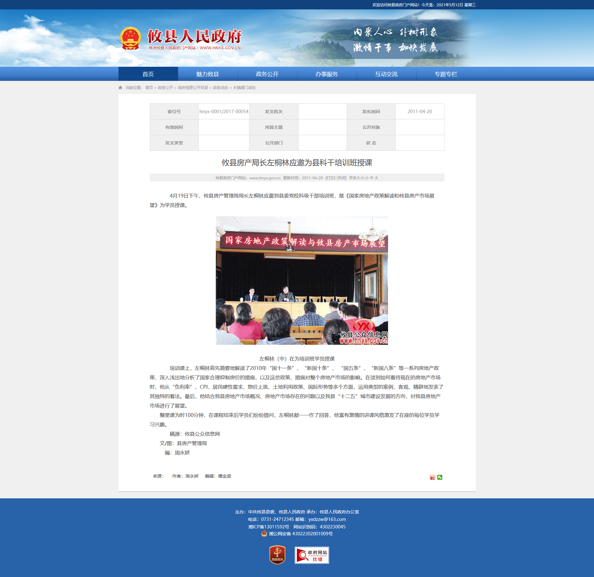 4月19日下午,攸县房产管理局局长左桐林应邀到县委党校科级干部培训班,就《国家房地产政策解读和攸县房产市场展望》为学员授课。