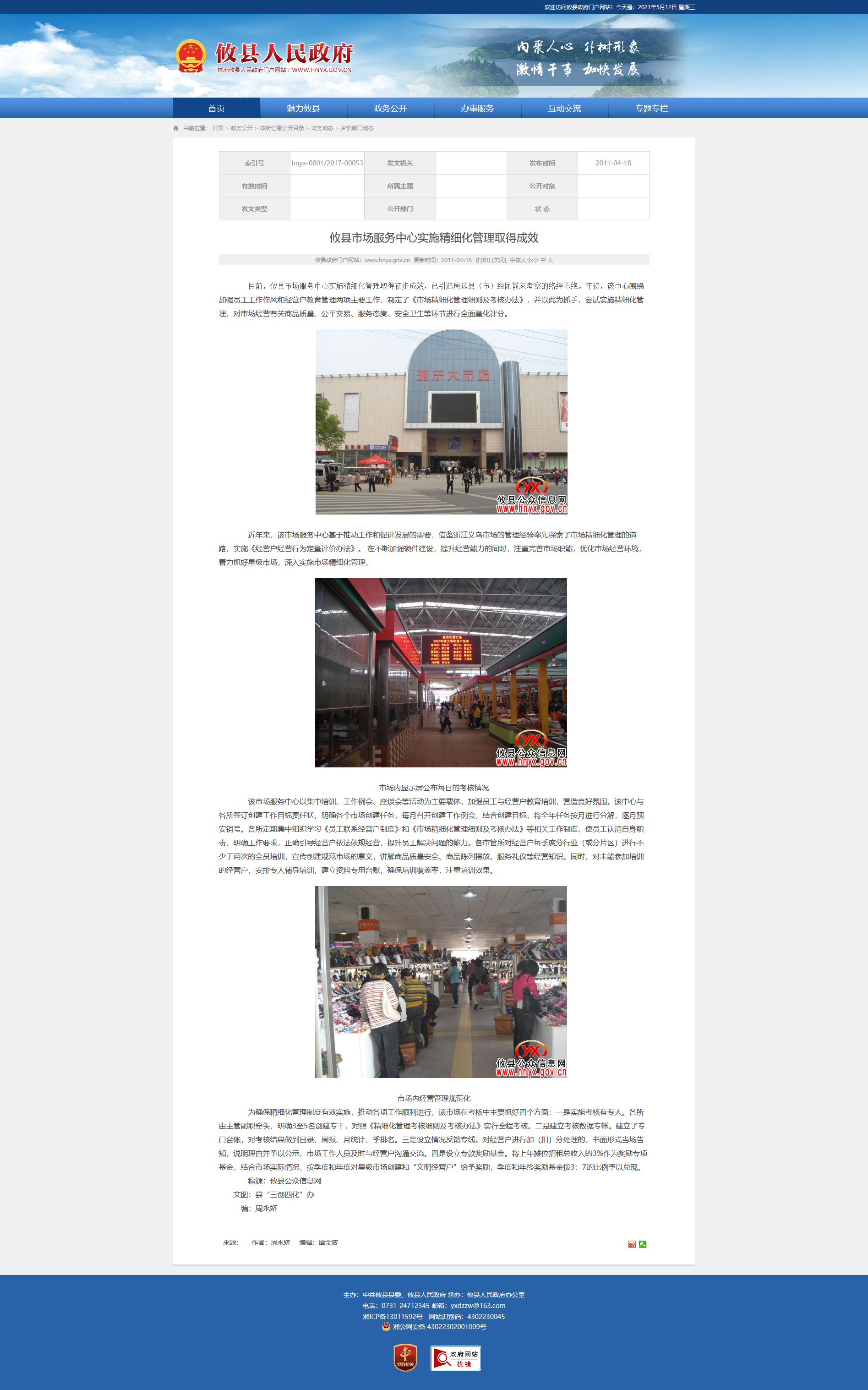 目前,攸县市场服务中心实施精细化管理取得初步成效,已引起周边县(市)组团前来考察的络绎不绝。年初,该中心围绕加强员工工作作风和经营户教育管理两项主要工作,制定了《市场精细化管理细则及考核办法》,并以此为抓手,尝试实施精细化管理,对市场经营有关商品质量、公平交易、服务态度、安全卫生等环节进行全面量化评分。