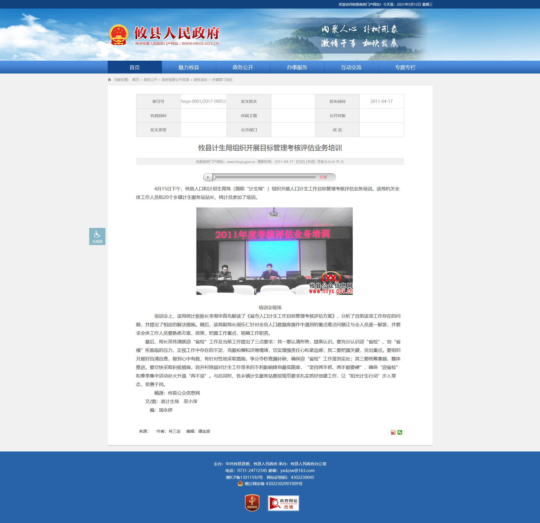 4月15日下午,攸县人口和计划生育局(简称“计生局”)组织开展人口计生工作目标管理考核评估业务培训。该局机关全体工作人员和20个乡镇计生服务站站长、统计员参加了培训。