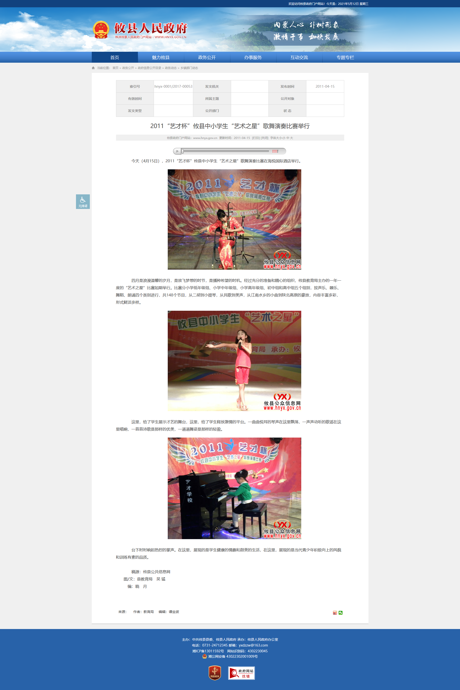 今天(4月15日),2011“艺才杯”攸县中小学生“艺术之星”歌舞演奏比赛在海悦国际酒店举行。