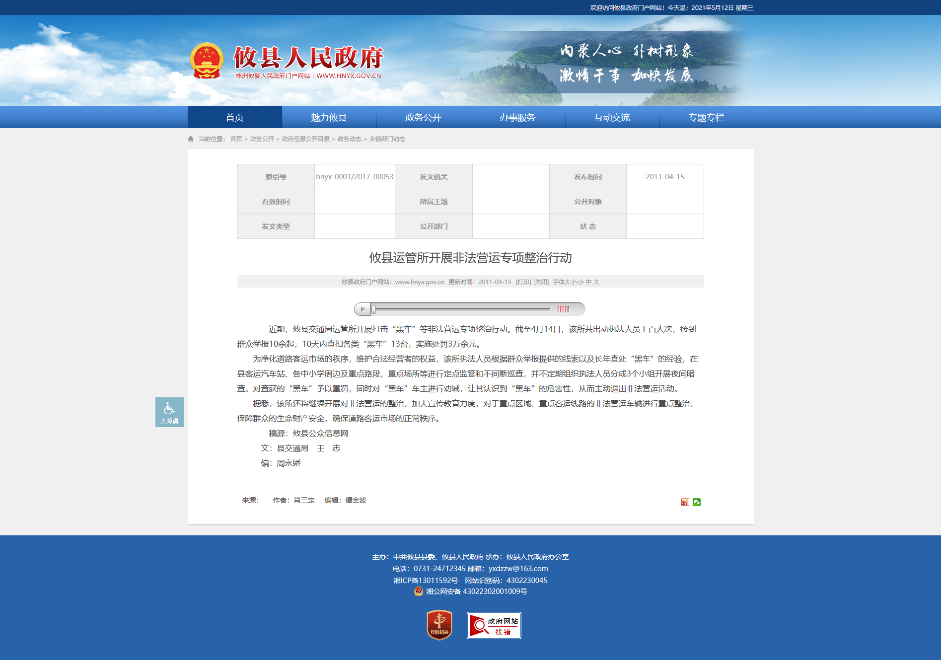 近期,攸县交通局运管所开展打击“黑车”等非法营运专项整治行动。截至4月14日,该所共出动执法人员上百人次,接到群众举报10余起,10天内查扣各类“黑车”13台,实施处罚3万余元。
