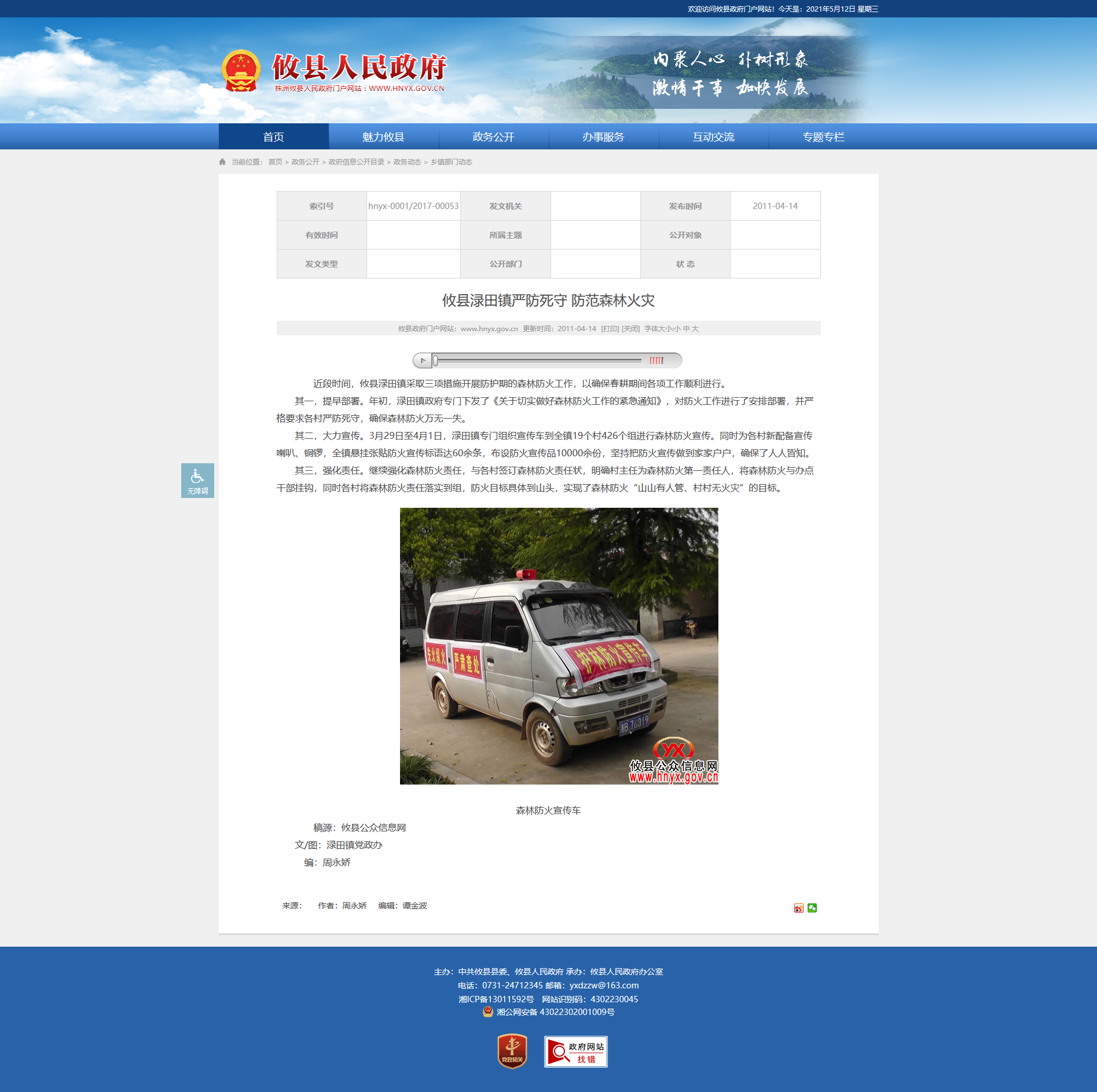 其二,大力宣传。3月29日至4月1日,渌田镇专门组织宣传车到全镇19个村426个组进行森林防火宣传。同时为各村新配备宣传喇叭、铜锣,全镇悬挂张贴防火宣传标语达60余条,布设防火宣传品10000余份,坚持把防火宣传做到家家户户,确保了人人皆知。