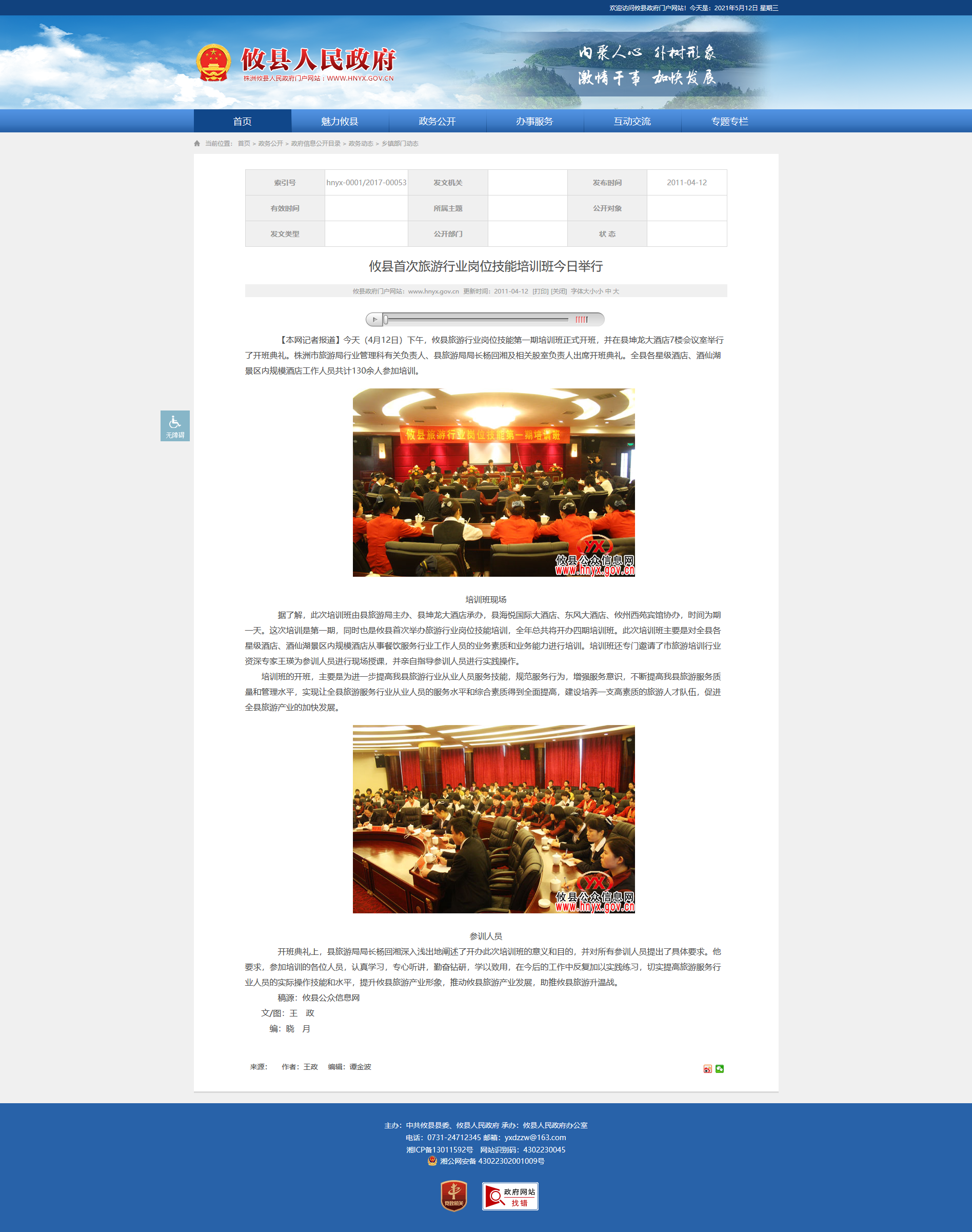 【本网记者报道】今天(4月12日)下午,攸县旅游行业岗位技能第一期培训班正式开班,并在县坤龙大酒店7楼会议室举行了开班典礼。株洲市旅游局行业管理科有关负责人、县旅游局局长杨回湘及相关股室负责人出席开班典礼。全县各星级酒店、酒仙湖景区内规模酒店工作人员共计130余人参加培训。