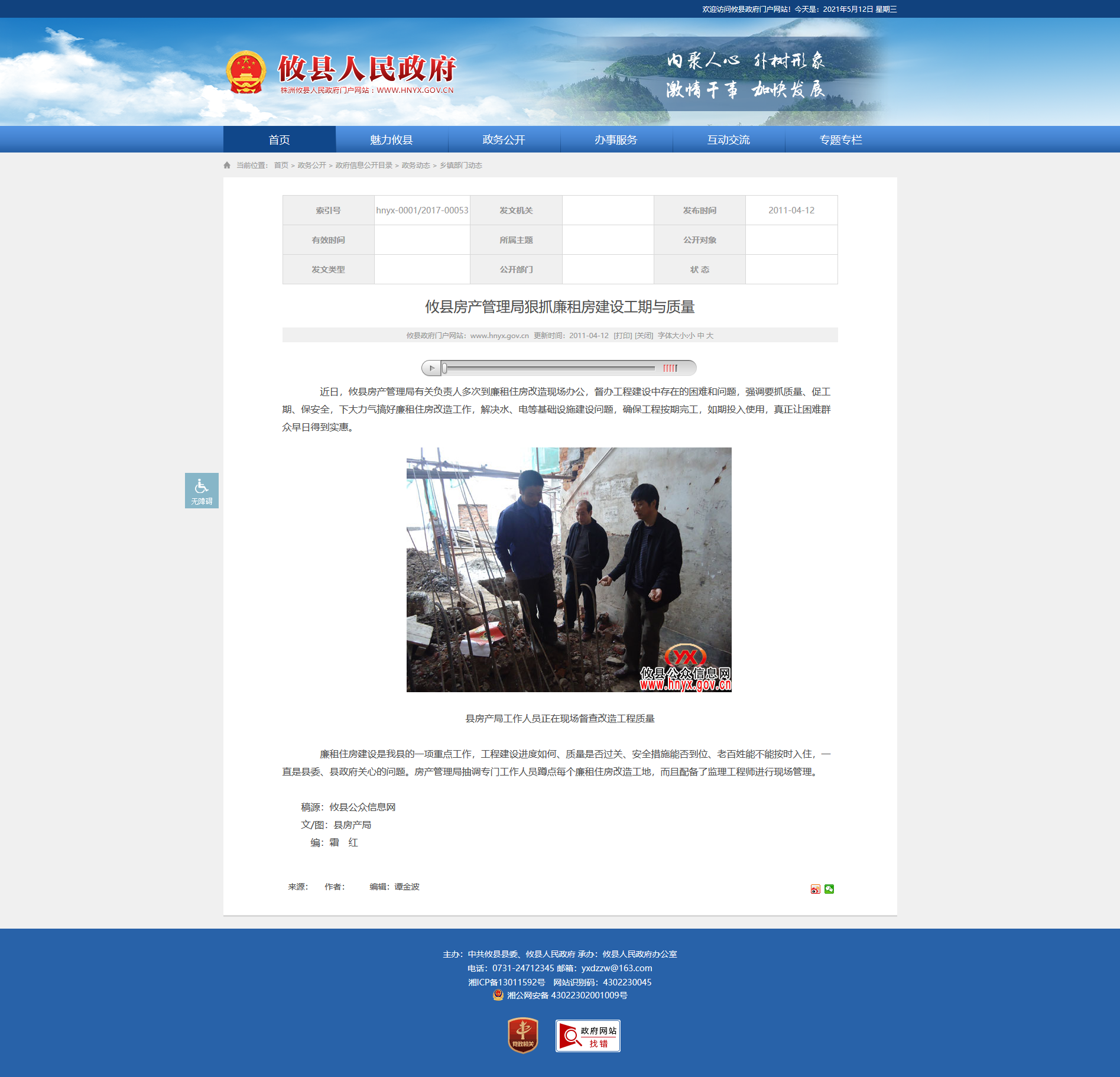 廉租住房建设是我县的一项重点工作,工程建设进度如何、质量是否过关、安全措施能否到位、老百姓能不能按时入住,一直是县委、县政府关心的问题。房产管理局抽调专门工作人员蹲点每个廉租住房改造工地,而且配备了监理工程师进行现场管理。