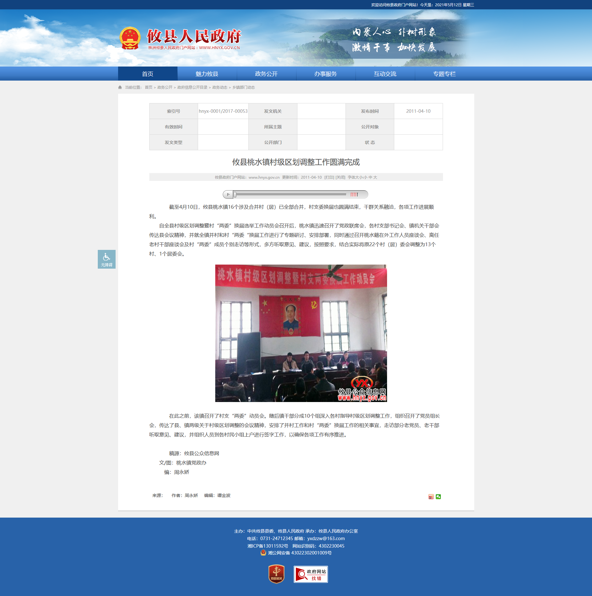 截至4月10日,攸县桃水镇16个涉及合并村(居)已全部合并,村支委换届也圆满结束,干群关系融洽,各项工作进展顺利。