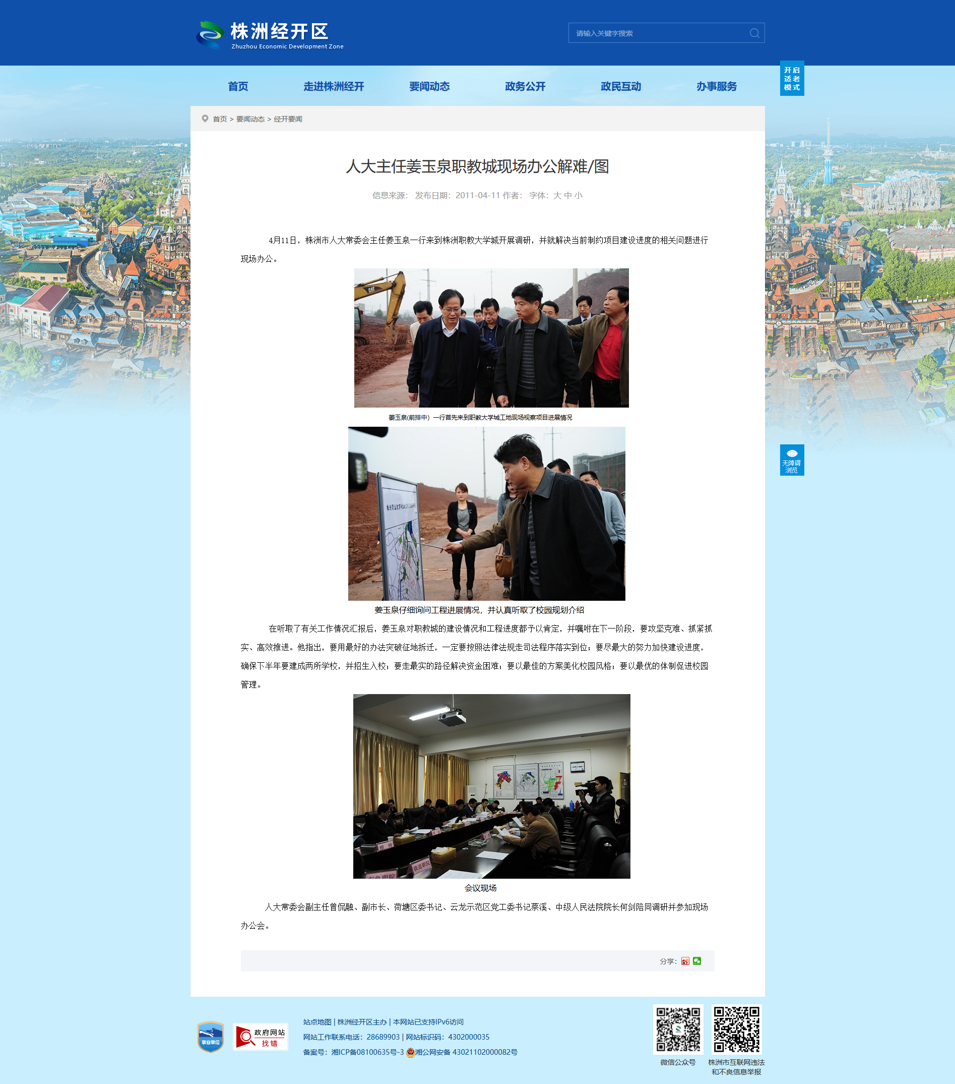 4月11日,株洲市人大常委会主任姜玉泉一行来到株洲职教大学城开展调研,并就解决当前制约项目建设进度的相关问题进行现场办公。
