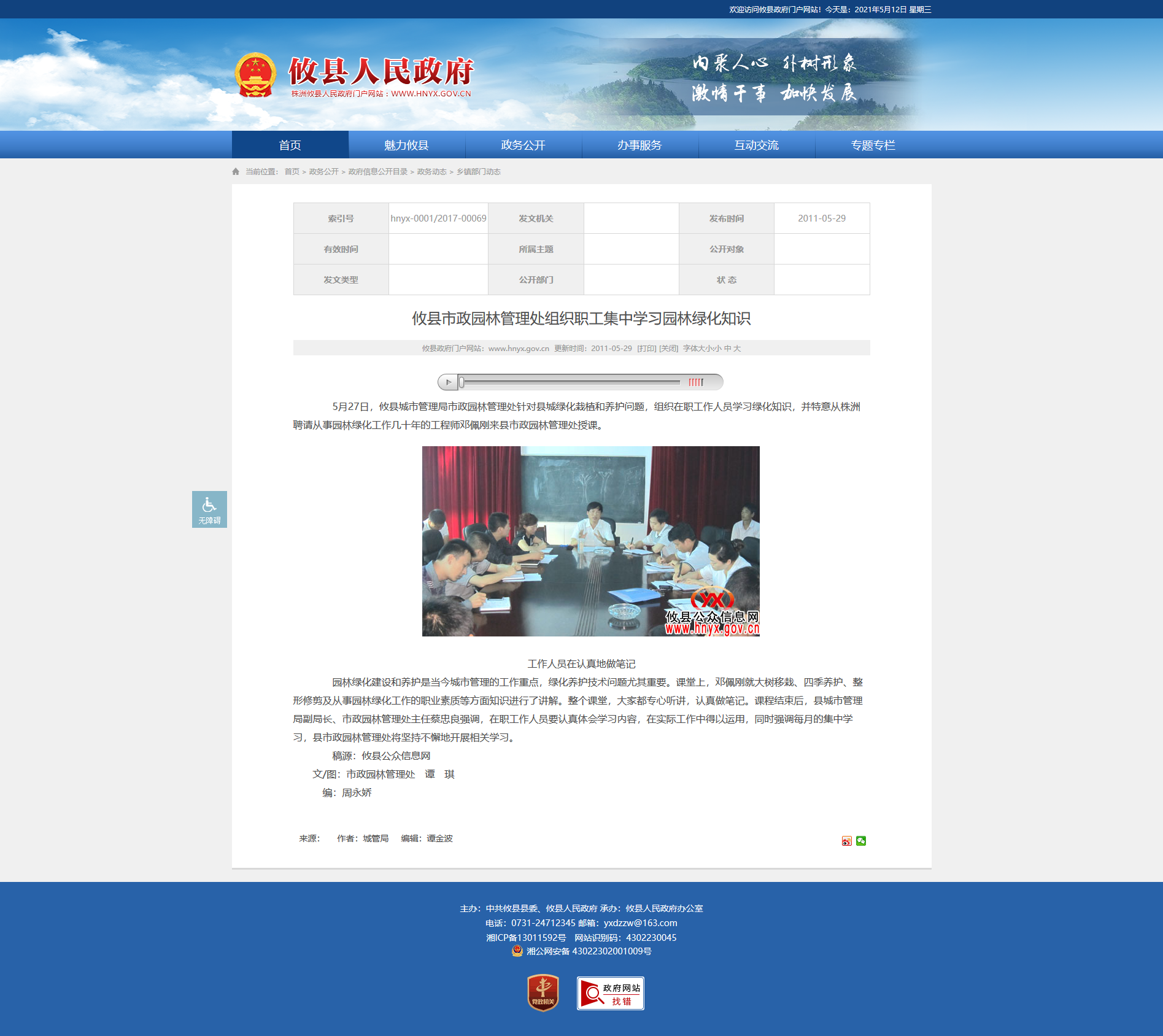 5月27日,攸县城市管理局市政园林管理处针对县城绿化栽植和养护问题,组织在职工作人员学习绿化知识,并特意从株洲聘请从事园林绿化工作几十年的工程师邓佩刚来县市政园林管理处授课。