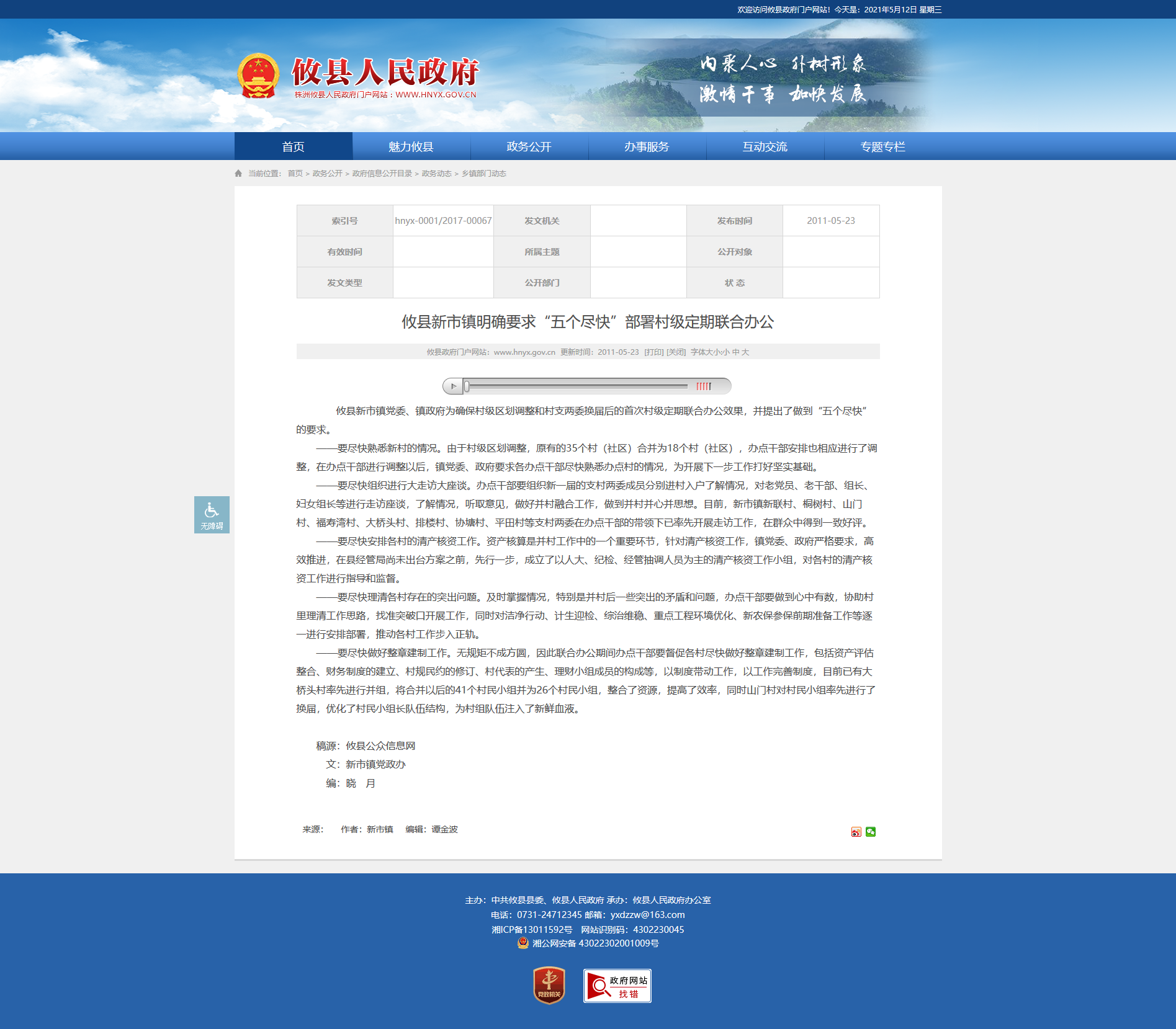 攸县新市镇党委、镇政府为确保村级区划调整和村支两委换届后的首次村级定期联合办公效果,并提出了做到“五个尽快”的要求。